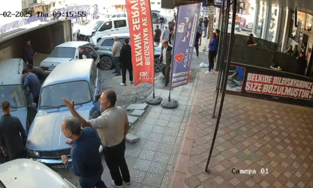 Malatya’da kamyonun 15 araca çarptığı kaza kamerada