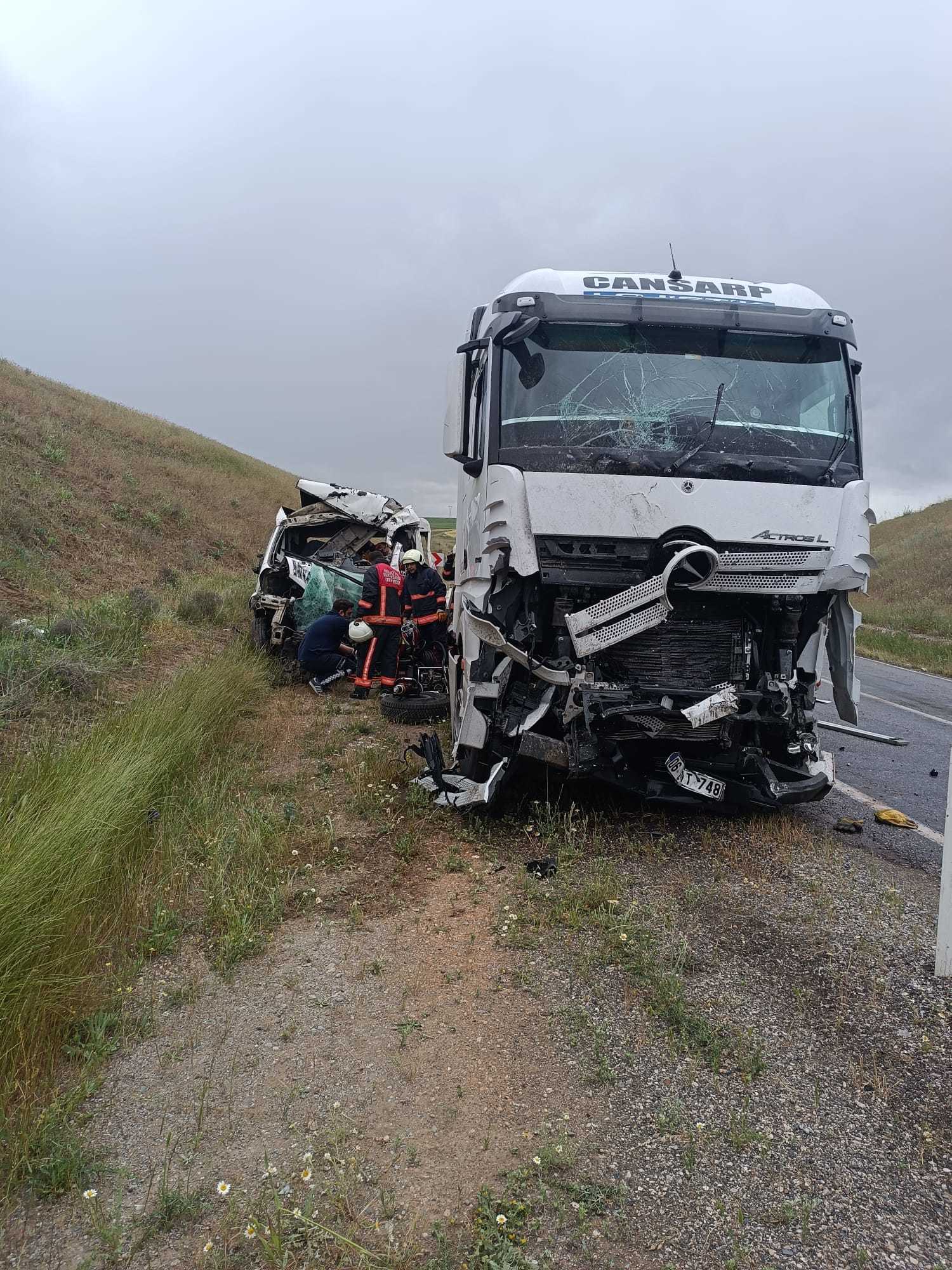 • Malatya'da TIR ile kamyonetin kafa kafaya çarpıştığı kazada 1 kişi öldü, 1 kişi de yaralandı. Fotoğraf: Malatya, (DHA)