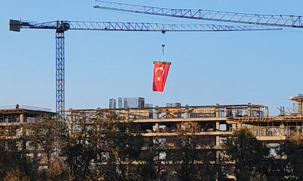 Malatya’da, vinç operatörü 35 metre yükseklikte Türk bayrağını dalgalandırdı