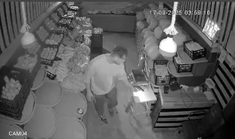 Manavda 2 saat arayla hırsızlık; para bulamayınca meyve çaldılar
