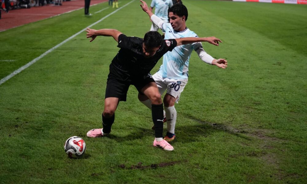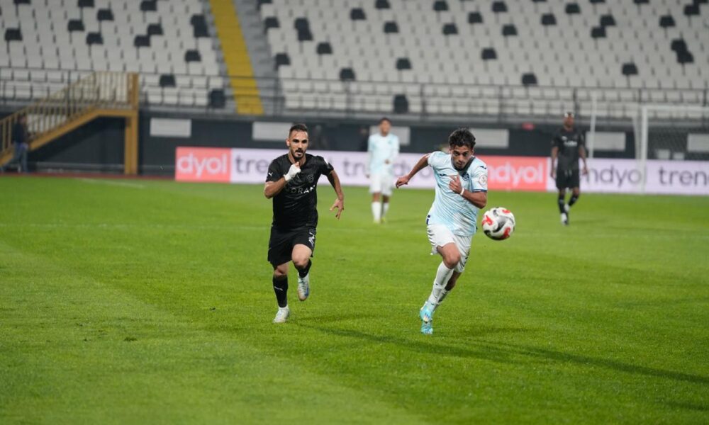 8’inci dakikada sağ kanatta kazanılan korneri Burak penaltı noktasına doğru kullandı. Topla buluşan Ayberk’in sağ ayağı üstüyle aşırttığı top, üst direkten auta çıktı.