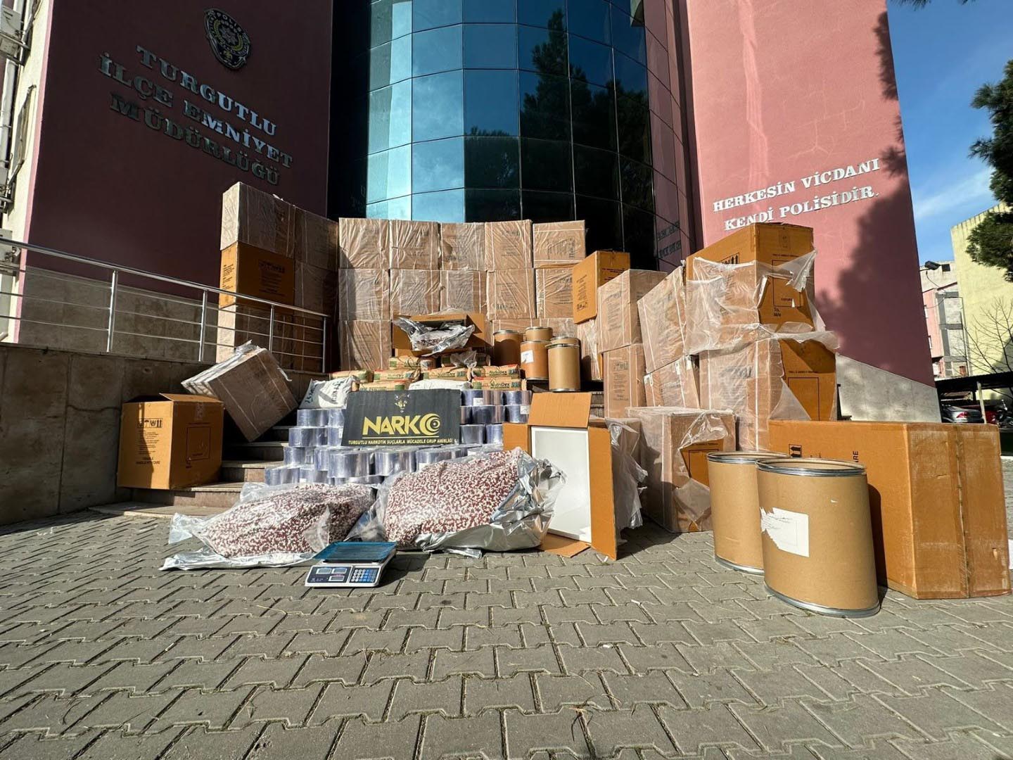 Suç işlemek amacıyla örgüt kurma, örgütlü şekilde uyuşturucu madde imali ve ticareti yapma suçlarından devam eden soruşturma dosyası kapsamında, suç organizasyonu içerisinde irtibatı ve iltisakı bulunduğu belirlenen Turgutlu merkezli Salihli ilçesi, İstanbul, İzmir, Ankara ve Artvin illerinde 51 şüpheli daha tespit edildi. Düzenlenen operasyonda, 75 bin uyuşturucu hap, 200 kg uyuşturucu hammaddesi, hassas terazi, 1 ruhsatsız silah, 2 ruhsatsız tüfek ve çok sayıda fişek ele geçirildi.