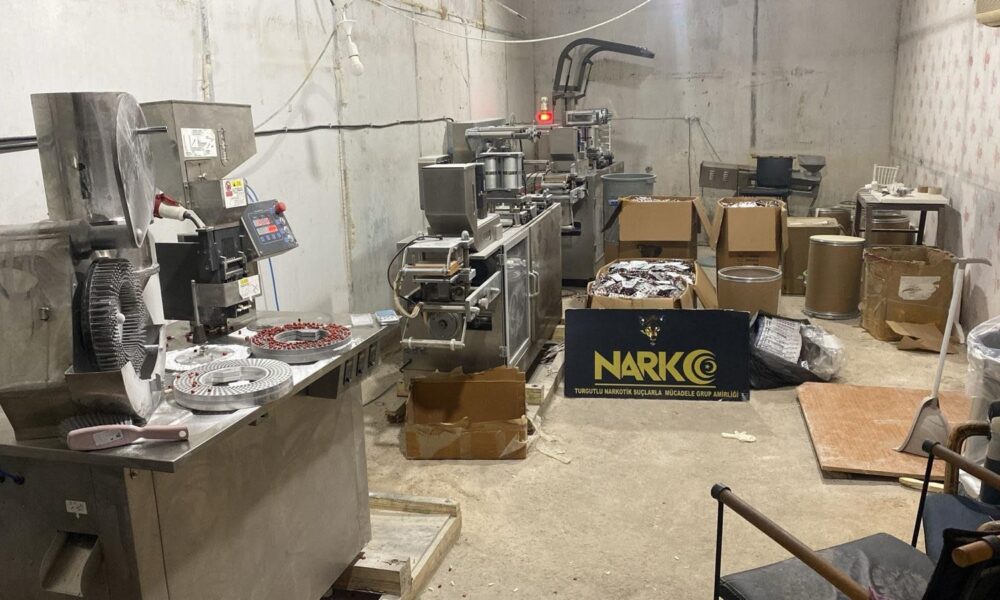 Turgutlu Cumhuriyet Başsavcılığı koordinesinde Turgutlu Narkotik Suçlarla Mücadele Büro Amirliği ekipleri, geçen şubat ayında Derbent Mahallesinde bulunan eski bir tavuk çiftliğine operasyon düzenledi. Düzenlenen operasyonda 4 uyuşturucu hap imal etmeye yarayan makine, 358 bin 858 sentetik ecza hap, kapsüllendiğinde 992 bin sentetik ecza hap imal edilebilecek 397 kg toz halinde uyuşturucu madde, 3 hassas terazi, 107 plaster şeridi ve 36 koli olmak üzere toplamda 3 milyon 818 bin sentetik ecza hap boş kapsülü ele geçirildi. Operasyonda 4 şüpheli ise gözaltına alındı.