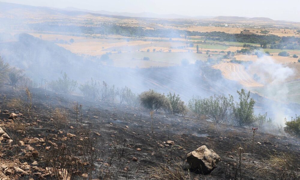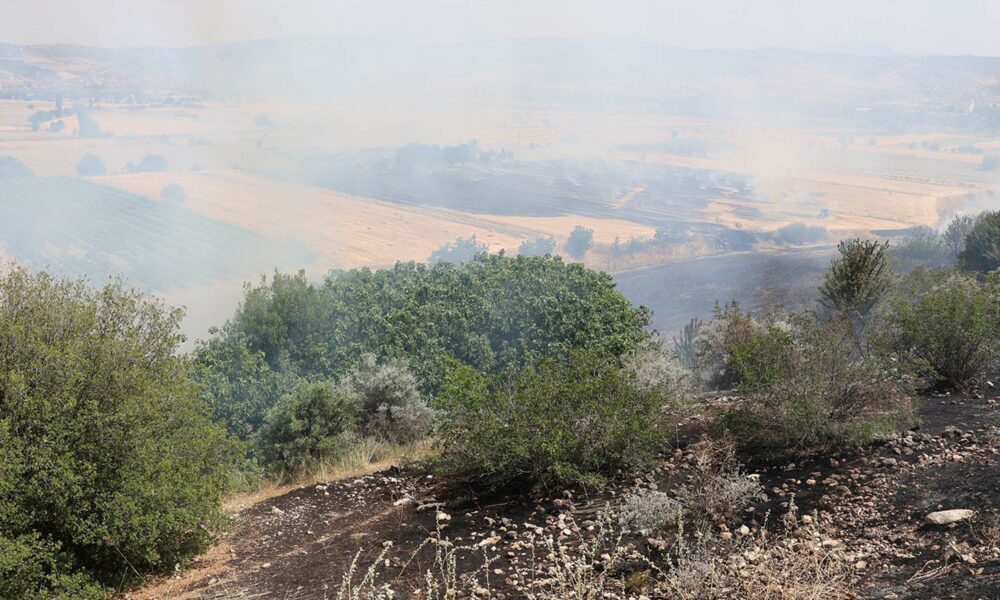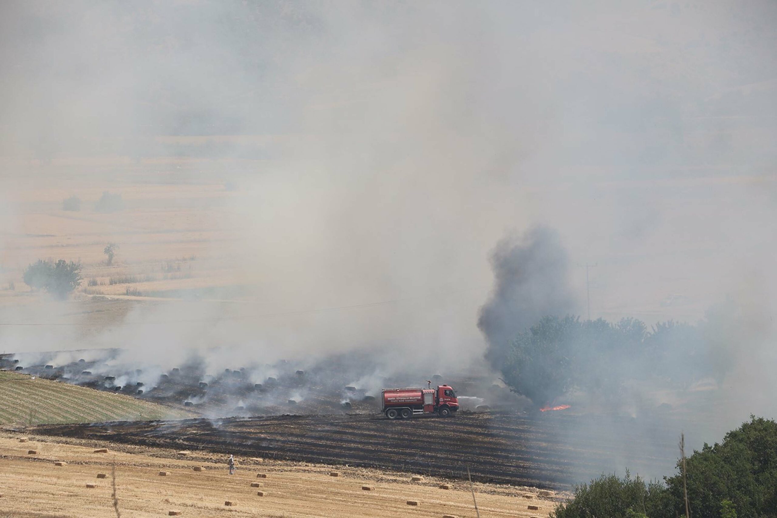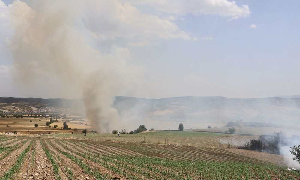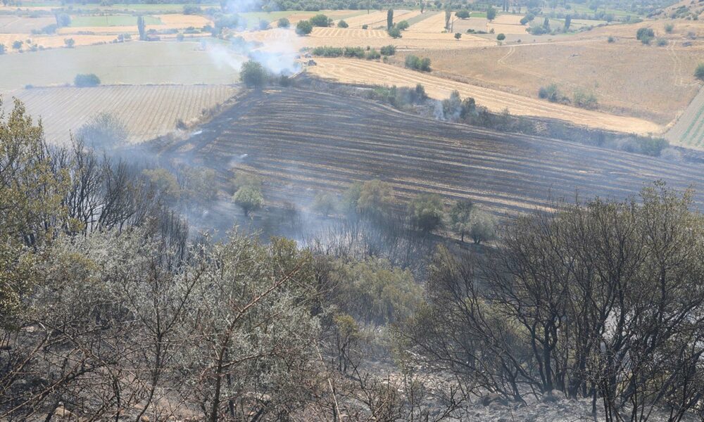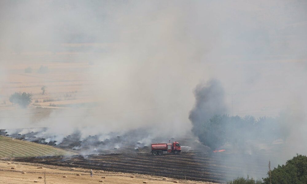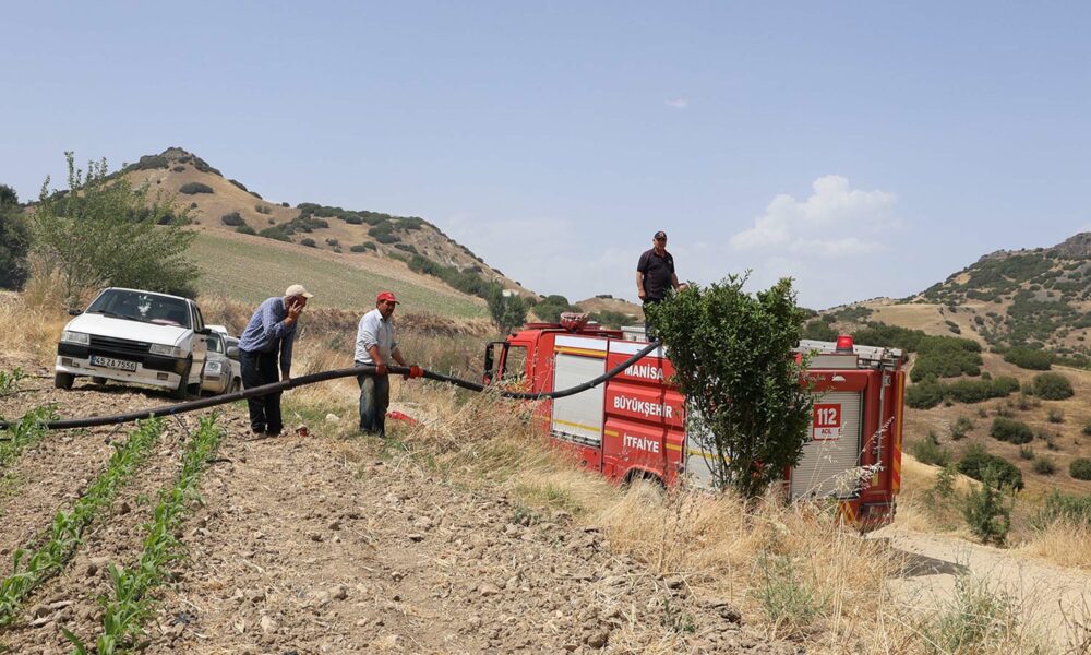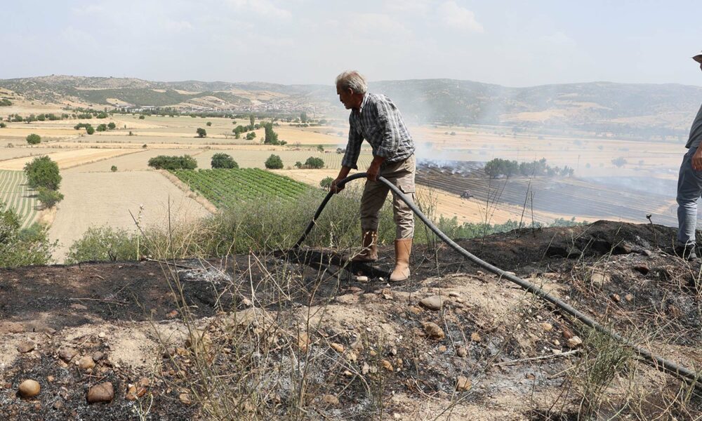 Manisa’da buğday tarlasında yangın; 100 dönüm alan yandı