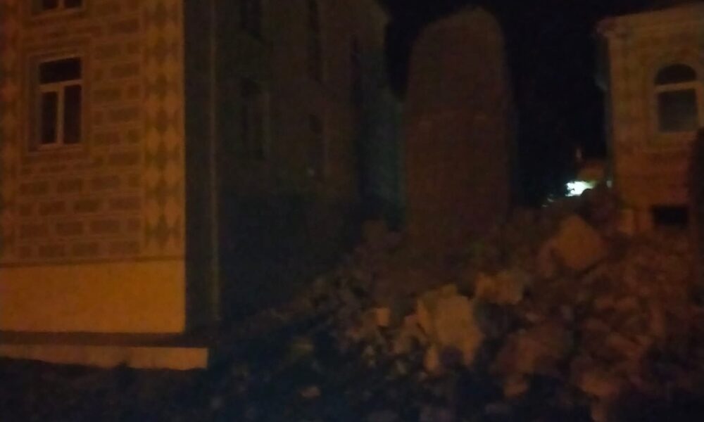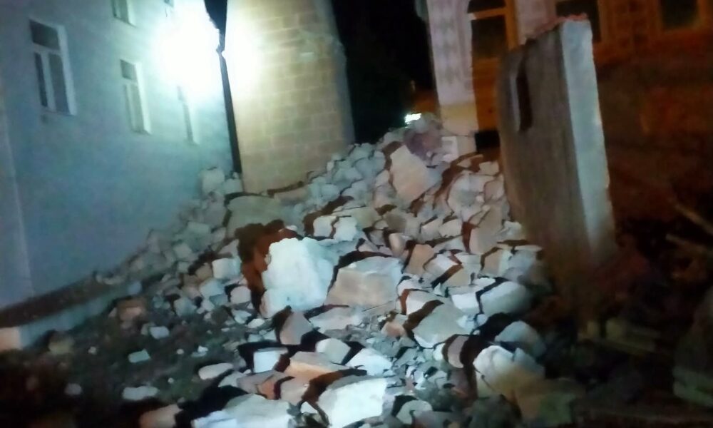 Manisa’da fırtınada cami minaresi devrildi