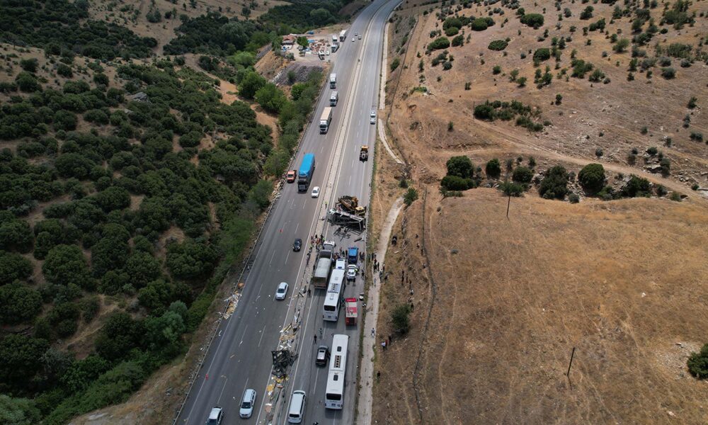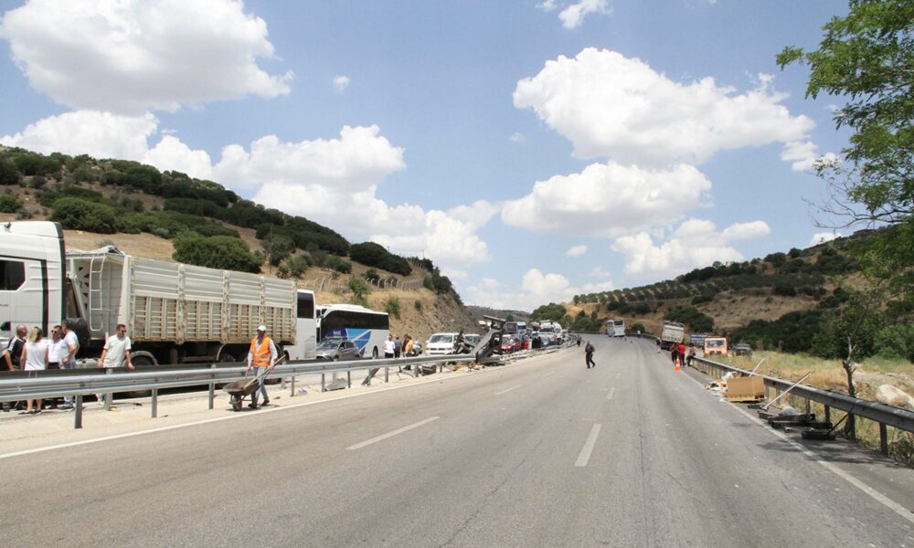 Öte yandan kaza nedeniyle Ankara- İzmir karayolunun İzmir istikameti 3 saat süreyle trafiğe kapalı kaldı. Karayolları, itfaiye ve trafik polislerinin geniş güvenlik önlemi aldığı kaza noktasında, devrilen kamyonun kaldırılması için çalışma başlatıldı. Devrilen kamyon vinç yardımıyla yoldan kaldırılırken, İzmir istikametine trafik akışı bir süre tek şeritten kontrollü olarak sağlandı. Kaza nedeniyle oluşan yaklaşık 12 kilometrelik araç kuyruğu ise dronla görüntülendi.