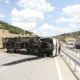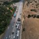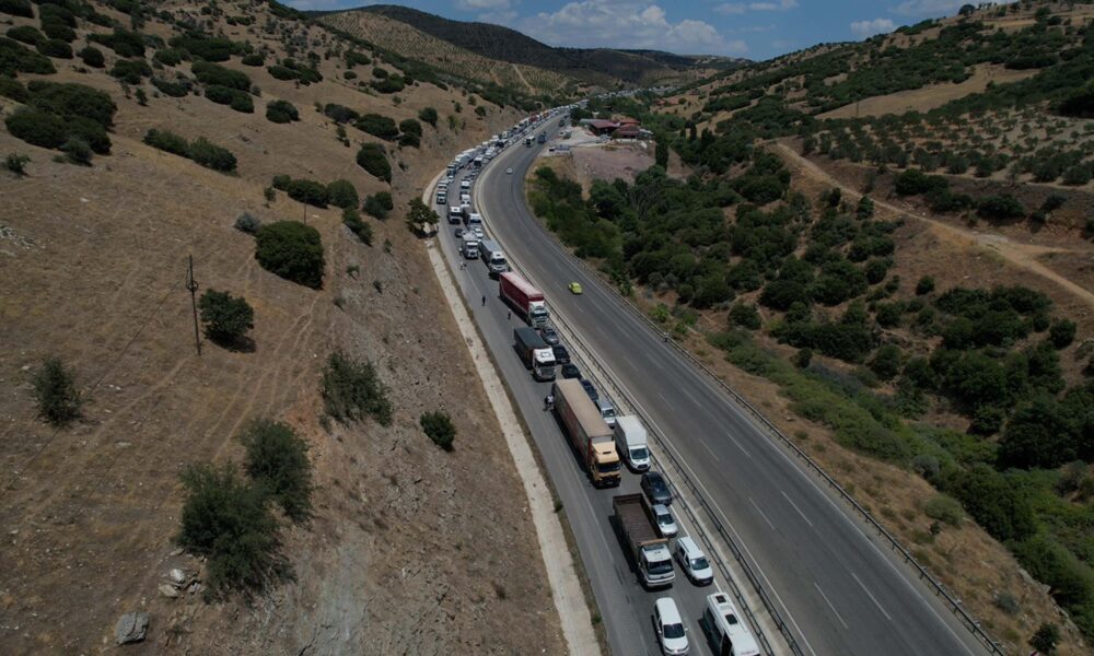 Manisa’da kamyon devrildi; 12 kilometrelik araç kuyruğu dronla görüntülendi