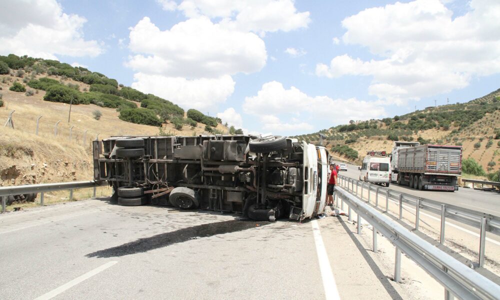 Kaza, saat 13.00 sıralarında, İzmir- Ankara karayolu Kovukdere rampalarında meydana geldi. Rıfat Ateş yönetimindeki 45 AGZ 370 plakalı kamyon, sürücüsünün direksiyon kontrolünü yitirmesi sonucu bariyerlere çarpıp, devrildi. Yaklaşık 500 metre sürüklenerek durabilen kamyonun şoförü Ateş, kazada hafif yaralandı. Çevredekiler durumu 112 Acil Çağrı Merkezine bildirdi. İhbar üzerine kaza yerine sağlık, itfaiye ve polis ekipleri sevk edildi. Kamyon şoförü Ateş, sağlık ekiplerince Kula Devlet Hastanesine kaldırılıp, tedaviye alındı.