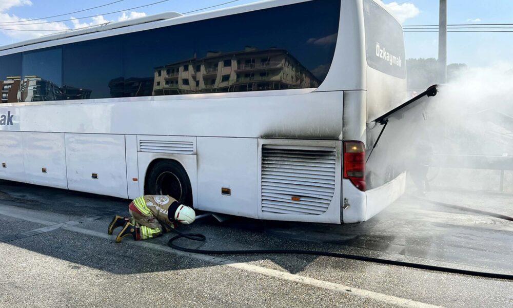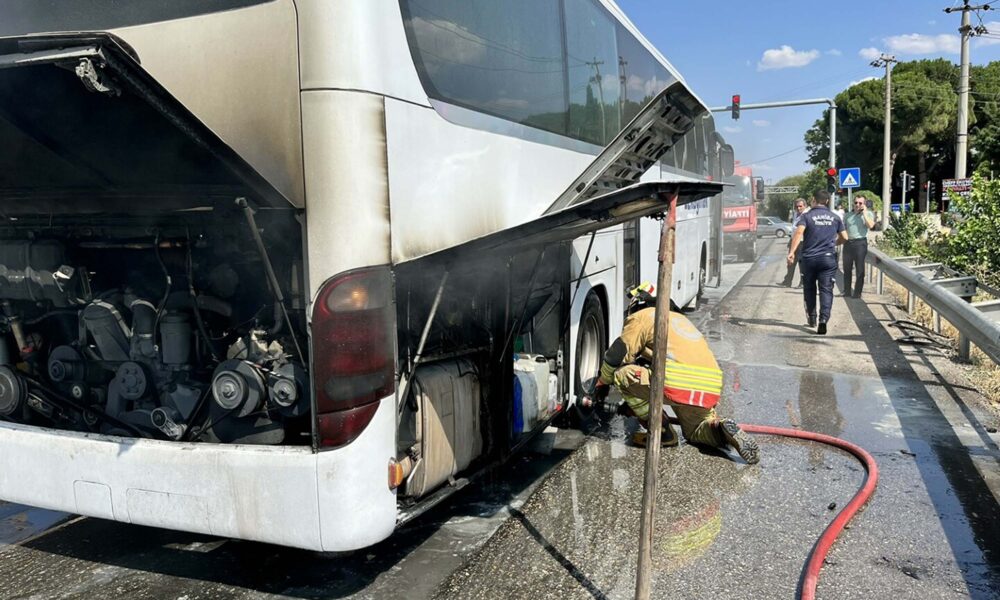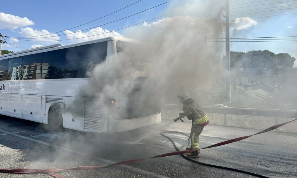 Manisa’da, seyir halindeki yolcu otobüsü alev aldı