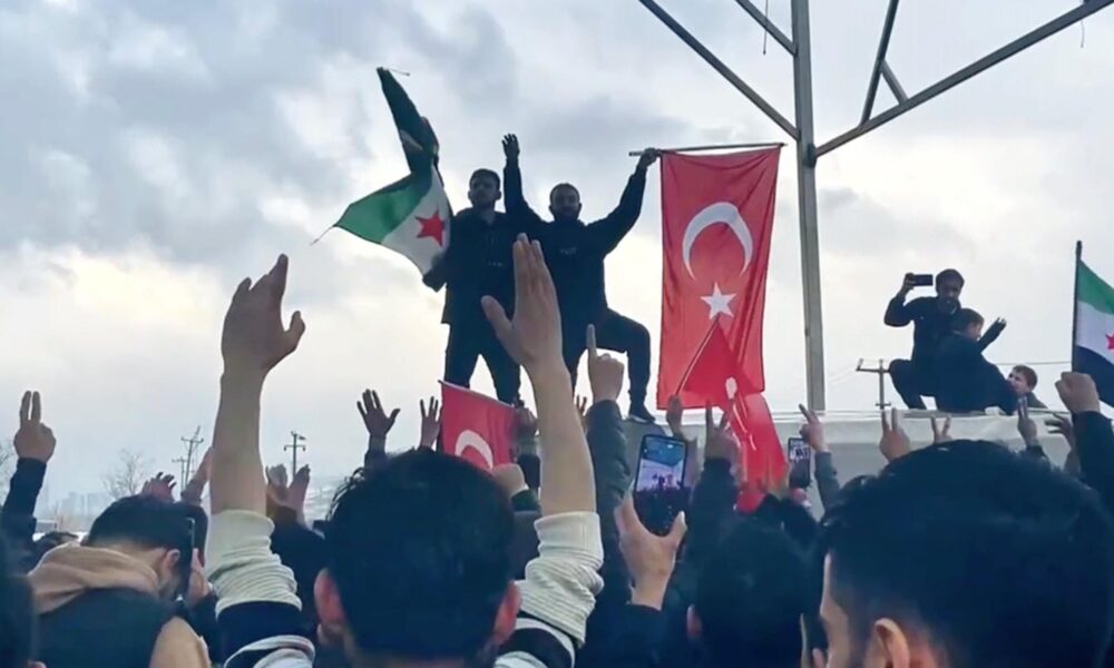 Suriye’nin başkenti Şam’ın muhaliflerin kontrolüne geçmesinin ardından Turgutlu’da sokağa dökülen Suriyeliler Mustafa Kemal Mahallesi Özdemir Sokak’ta toplanarak sevinç gösterisi yaptı. Zafer ve Türkiye lehine sloganlar atan kalabalık, müzikler eşliğinde eğlendi.