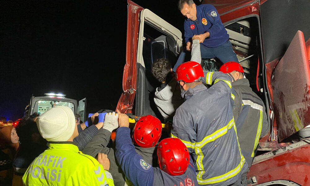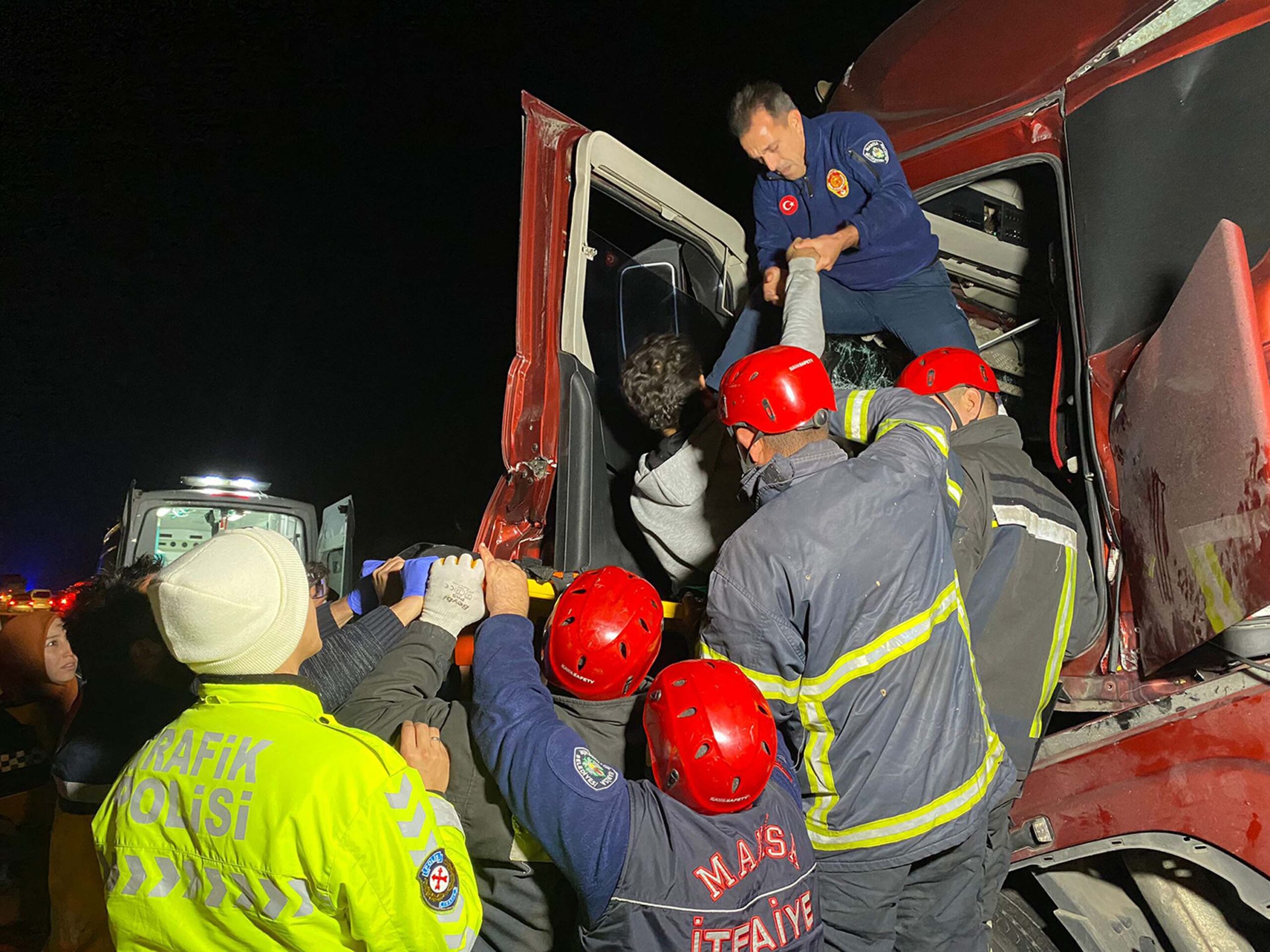 Manisa’da TIR, kamyona arkadan çarptı: 2 yaralı