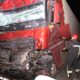 • Manisa’nın Kula ilçesinde, TIR'ın aynı yönde seyir halinde olan bir kamyonete arkadan çarpması sonucu meydana gelen kazada 2 sürücü yaralandı. Fotoğraf: Hasan YİĞEN/ Kula (Manisa), (DHA)