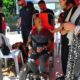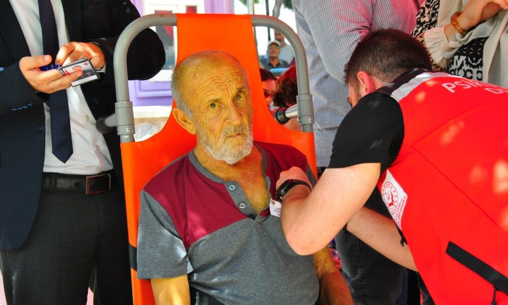 Manisa Celal Bayar Üniversitesi Hafsa Sultan Hastanesi'nde tedavisi süren şehidin babası Vasfi Mangura törene sağlık ekipleri eşliğinde katlanabilir sedye ile getirildi. Fotoğraf:Manisa,(DHA)