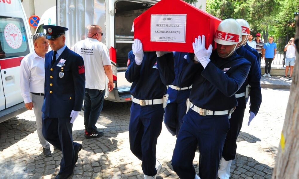 Piyade Astsubay Kıdemli Çavuş Fikret Mangura (37) için memleketi Manisa’nın Akhisar ilçesinde cenaze töreni düzenlendi. Fotoğraf:Manisa,(DHA)