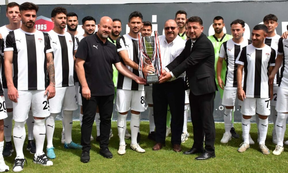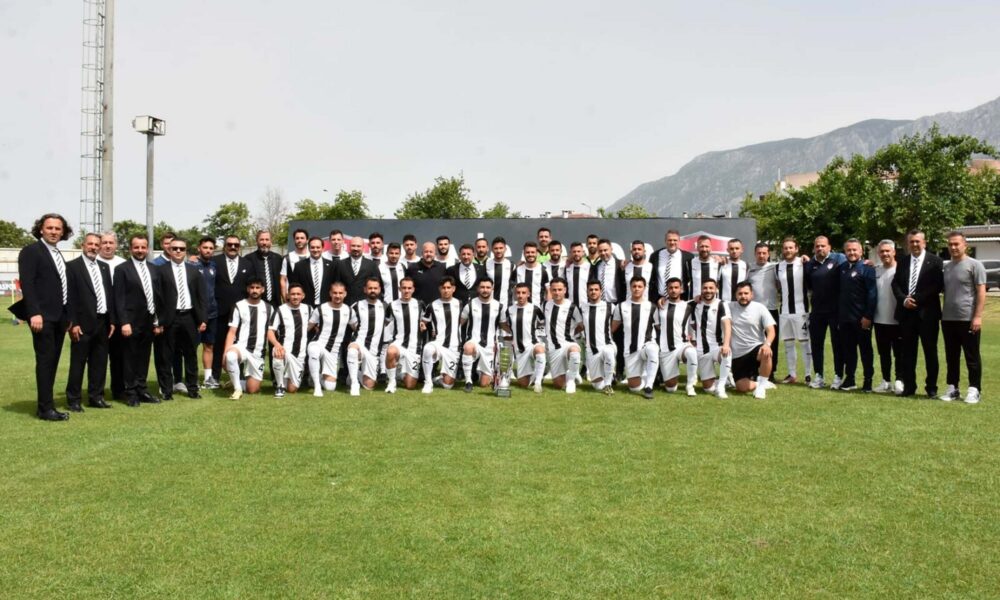 Manisa Süper Amatör Lig'de sezonu namağlup tamamlayarak Bölgesel Amatör Lig’e yükselen Manisaspor, şampiyonluk kupasına kavuştu. (FOTO: MANISA, DHA)