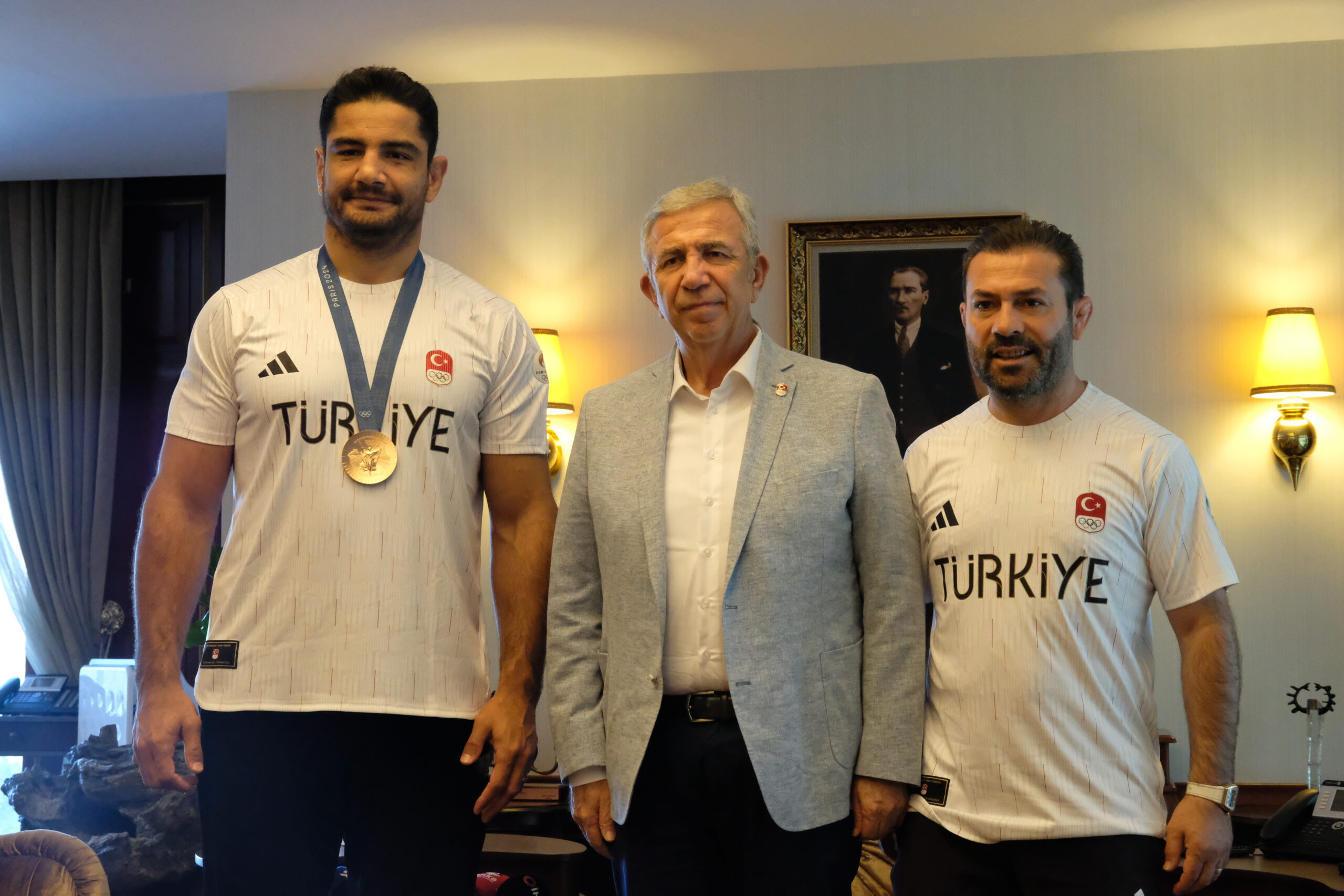 Mansur Yavaş, milli güreşçi Taha Akgül ve hocası Abdullah Çakmar ile bir araya geldi