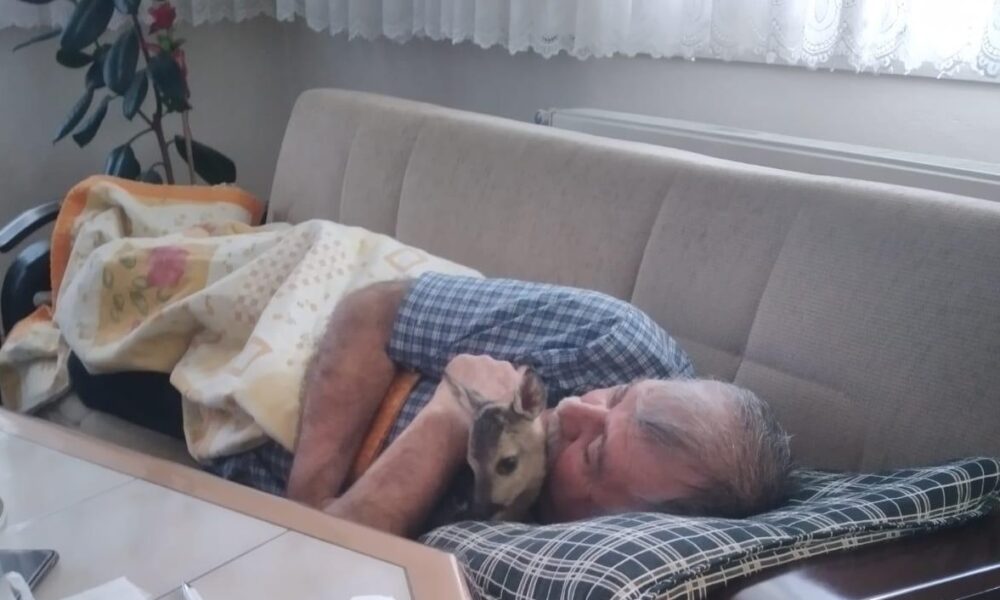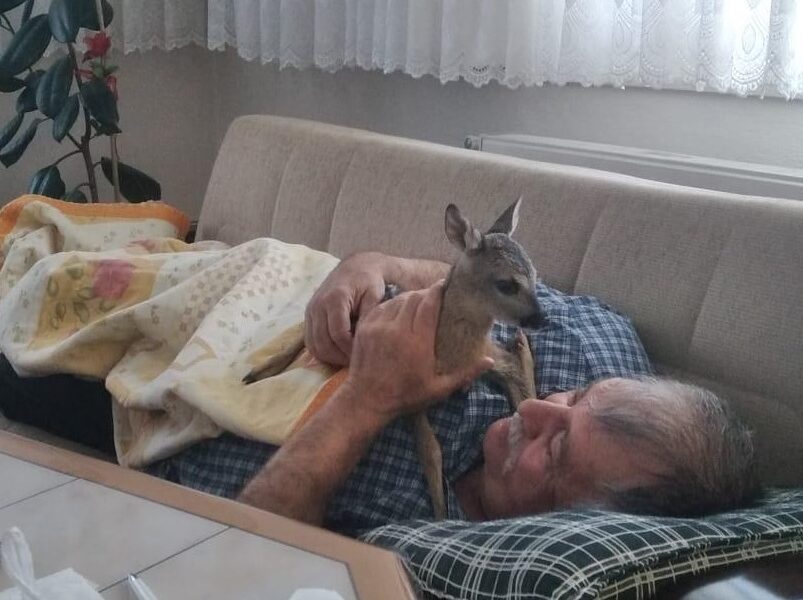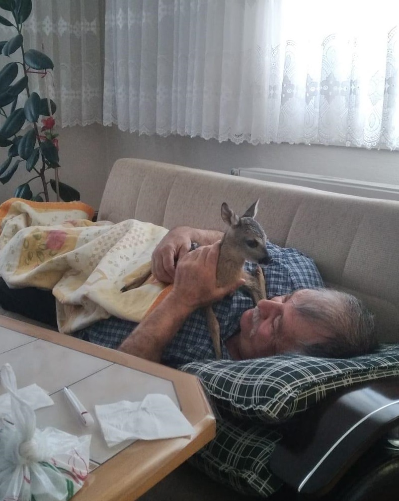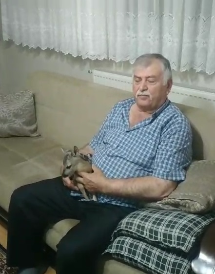 Mantar toplarken karaca yavrusunu bitkin buldu; evinde bakıma aldı