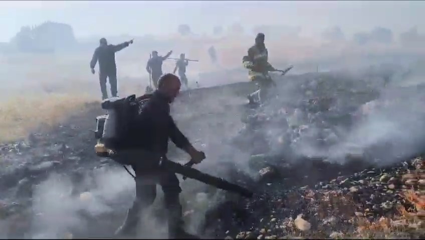 • Batman'ın Gercüş ilçesinde çıkan anız ve örtü yangını, rüzgarın etkisiyle Mardin’in Midyat ilçesine ulaştı. Yangına itfaiye ve TOMA araçlarıyla müdahale sürüyor. Fotoğraf: Mardin, (DHA)