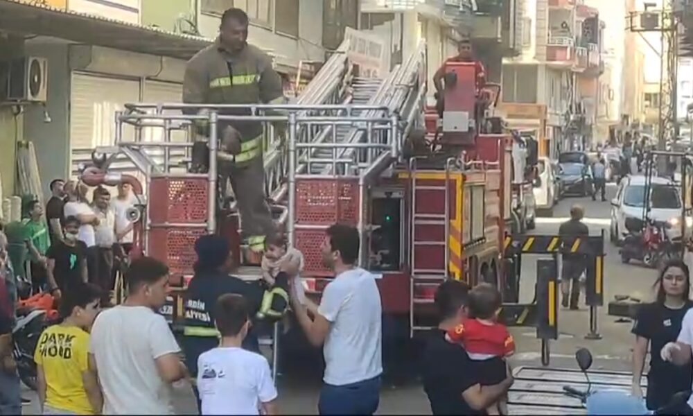 Mardin’de, apartman dairesinde çıkan yangında mahsur kalanları itfaiye kurtardı