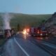Mardin’de devrilen TIR yandı: 2 yaralı