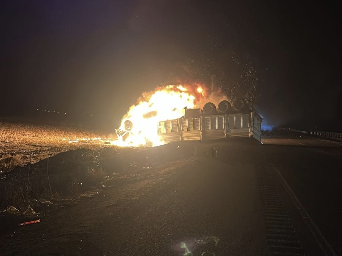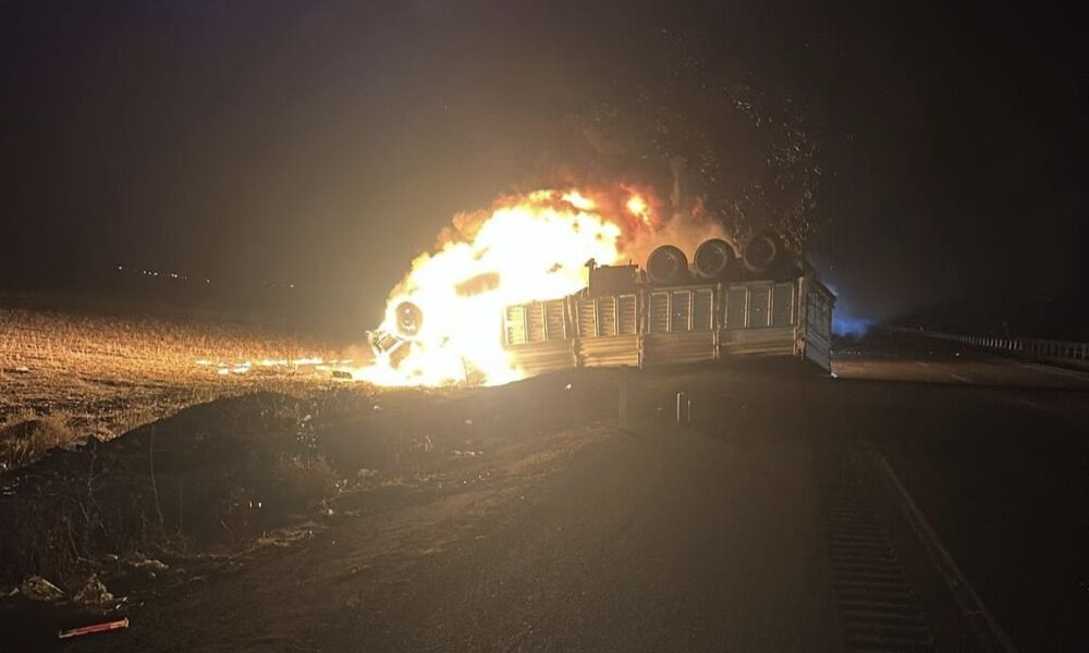 Mardin’de, devrilerek alev alan TIR’ın şoförü yanarak öldü
