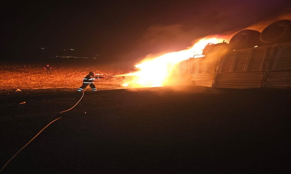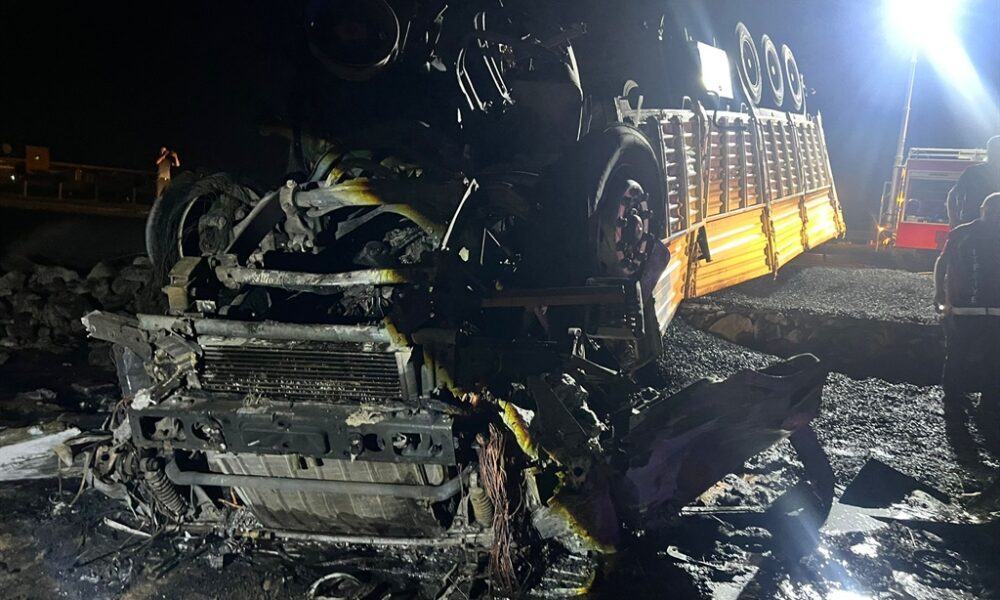Kaza, dün saat 20.30 sıralarında Nusaybin ilçesi Odabaşı Mahallesi mevkisinde meydana geldi. Mustafa Çiftçi’nin kontrolünü yitirdiği plakası belirlenemeyen TIR, devrilip, motor kısmından alev aldı. Çiftçi, yanan TIR’da mahsur kaldı. İhbarla bölgeye sağlık, itfaiye ve jandarma ekipleri sevk edildi. Yangın, ekiplerin müdahalesiyle kontrol altına alınarak söndürüldü. TIR’da yapılan incelemede, Çiftçi’nin hayatını kaybettiği belirlendi.