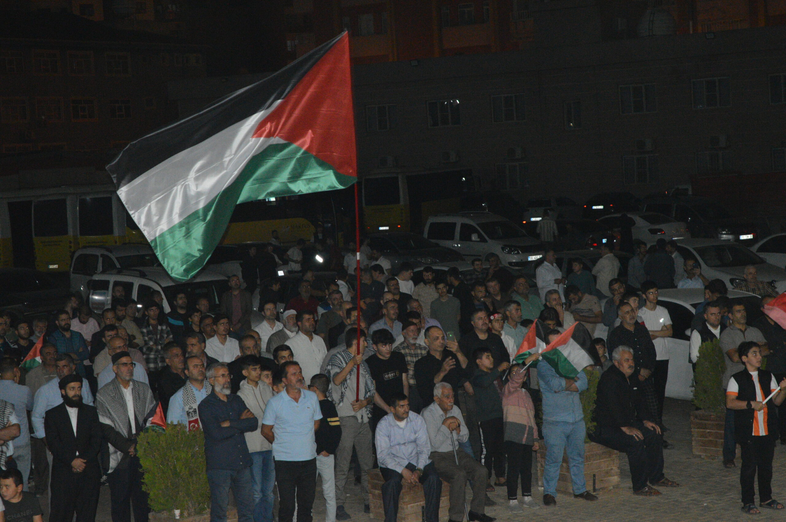 Kızıltepe ilçesindeki Kenan Kösen Camisi önünde sivil toplum kuruluşlarının öncülüğünde bir araya gelen grup İsrail’in Gazze’ye yönelik saldırılarını protesto etti. Eyleme katılanlar ellerinde Filistin bayraklarıyla ‘Mardin’den Gazze’ye direnişe bin selam’ sloganları atıldı. Kur’an-ı Kerim tilavetiyle başlayan programda, kalabalık adına açıklama yapan Eğitim-Bir-Sen Kızıltepe Şube Başkanı Tarık Yılmaz Filistin’de can pazarının kurulduğunu ve çocukların öldüğüne dikkat çekerek, “Şu vahşetin ortasında kan ve irinden beslenen siyonistlerin söylediklerine bakın, nasıl bir kötülükle karşı karşıya olduğumuzu daha iyi anlarsınız. İsrail Savunma Bakanı çıkıyor, Filistinliler hakkında, ‘Onlar insan değil, hayvanlarla savaşıyoruz’ diyor. Kötülüğün görüntüsü Netanyahu ‘Gazze’yi dümdüz edeceğiz’ diyor. Sözde Sağlık Bakanı, ‘Hastanelere başvuran Filistinlileri tedavi etmeyeceğiz’ diyor. Hatta ‘Hastanede yatan Filistinliler infaz edilebilir’ diyerek kutsal bir mesleği terör aracına dönüştürüyor. Sözde Cumhurbaşkanları, ‘Elektrik, su, yiyecek verilmeyecek. Ulaştırmaya çalışan araçlar vurulacak’ derken, sözde bir milletvekili, ‘Nükleer silah kullanmalıyız’ diyebiliyor. Her savaşın bir hukuku vardır. Bütün mahlukatta bir denge vardır. Fakat bu kandan beslenen örgüt, vahşetini sınırlayacak hiçbir değere, hukuka sahip değildir” dedi.