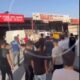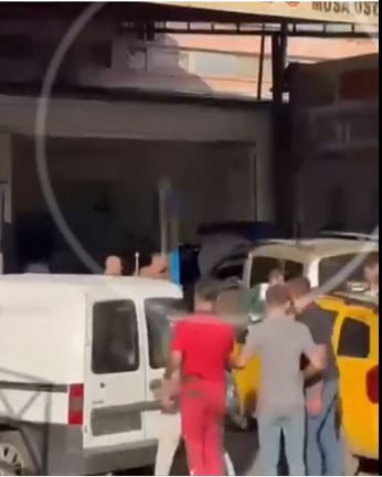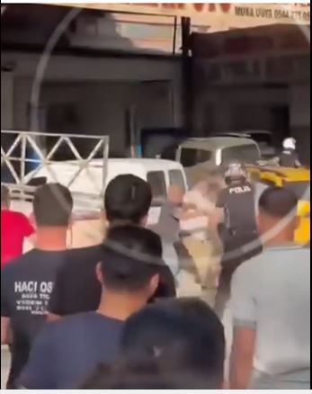 Öte yandan, kavga çevredekiler tarafından cep telefonuyla görüntülendi. Görüntülerde, ellerindeki levyelerle kavga eden gruba polisin biber gazı sıkarak müdahale ettiği ve tarafları ayırdığı görülüyor.