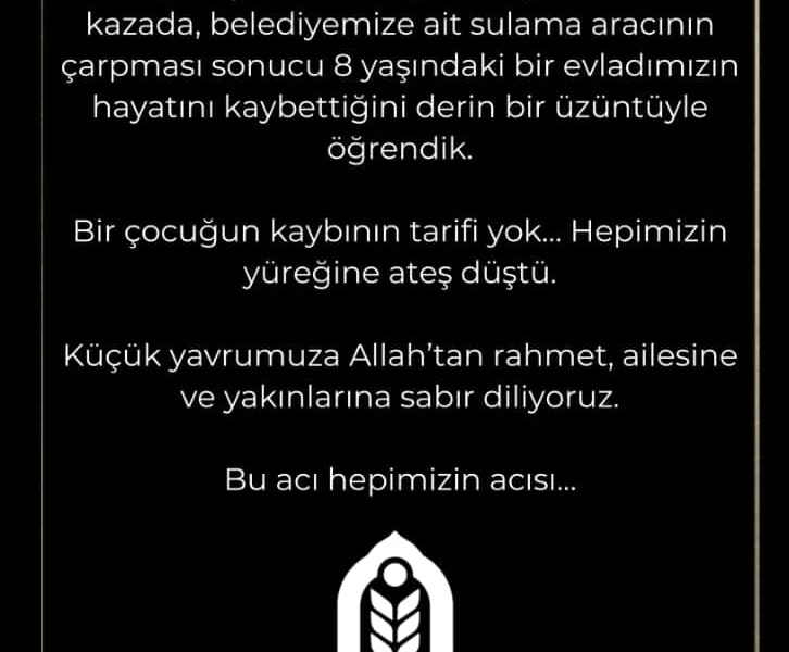 Kızıltepe Belediyesi’nden yapılan yazılı açıklamada, “Yüreğimiz yandı. Kızıltepe ilçemizde meydana gelen elim bir kazada, belediyemize ait sulama aracının çarpması sonucu 8 yaşındaki bir evladımızın hayatını kaybettiğini derin bir üzüntüyle öğrendik. Bir çocuğun kaybının tarifi yok. Hepimizin yüreğine ateş düştü. Küçük yavrumuza Allah’tan rahmet, ailesine ve yakınlarına sabır diliyoruz. Bu acı hepimizin acısı” denildi.