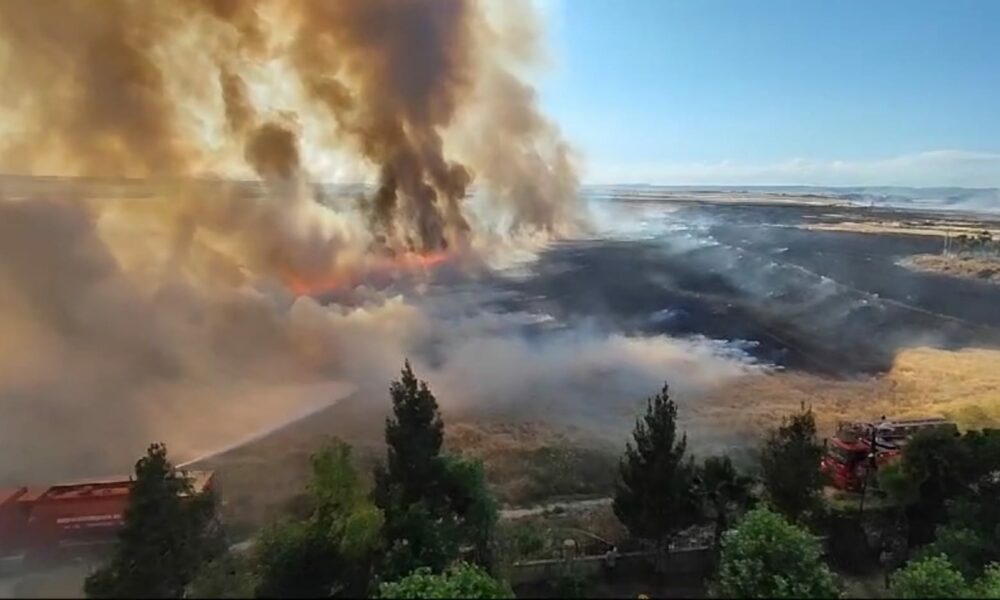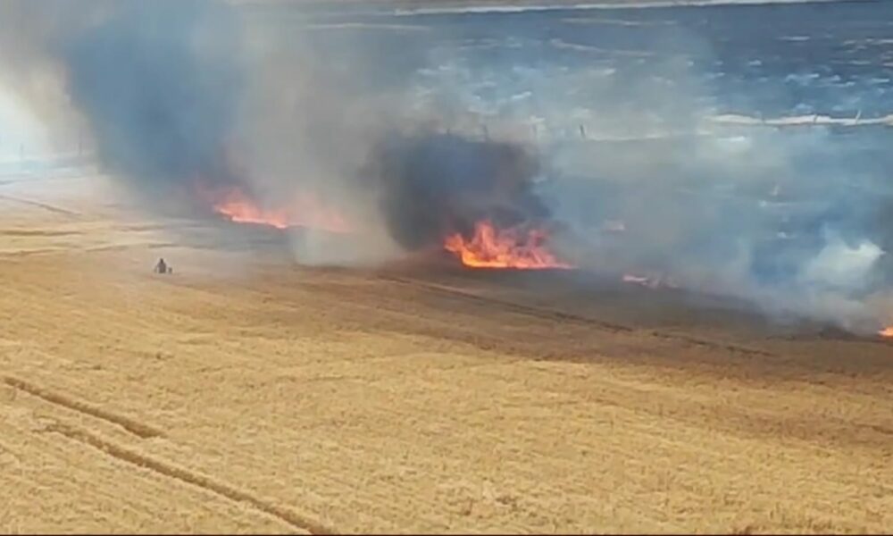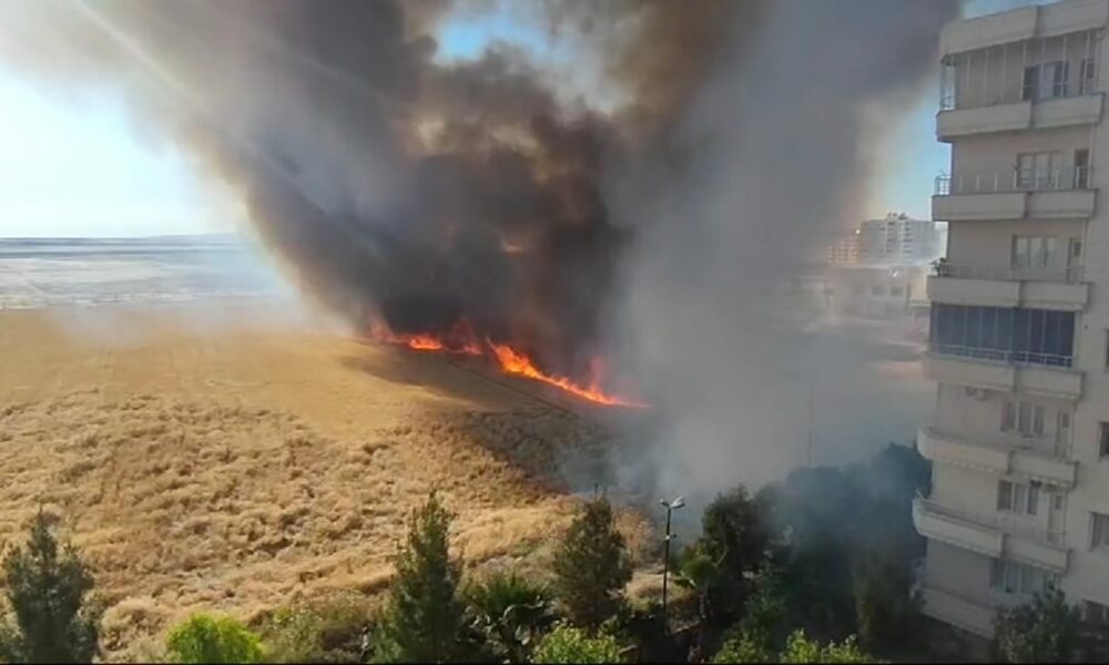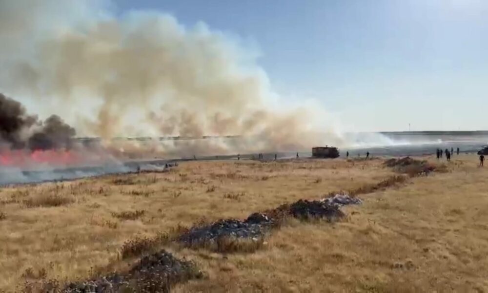 Mardin’de, Suriye sınırındaki mayınlı bölgede çıkan yangın 30 dönüm buğday ekili alanı yaktı
