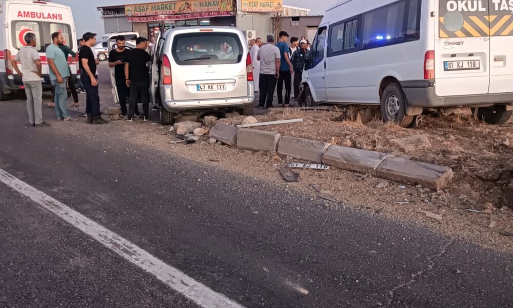 Kaza, akşam saatlerinde Kızıltepe ilçesi kırsal Sürekli ile Büyük Ayrık mahalleleri arasında meydana geldi. Sürücülerinin isimleri öğrenilmeyen 61 KJ 118 plakalı minibüs, 47 KK 171 plakalı hafif ticari araç ile 01 DDF 75 plakalı otomobil çarpıştı. Kazada araçlardaki Şeyhmus E. (61), Şükran E. (56), Fatma K. (55), Dilan K. (23), Janda T. (14), Amina K. (13), Zeynep K. (12) Becan T. (10) ve Ferat E. (4) yaralandı. İhbarla kaza yerine sağlık, itfaiye ve jandarma ekipleri sevk edildi. Yaralılar, ilk müdahalenin ardından ilçedeki hastanelere kaldırıldı. Tedaviye alınan yaralıların durumunun iyi olduğu öğrenildi.