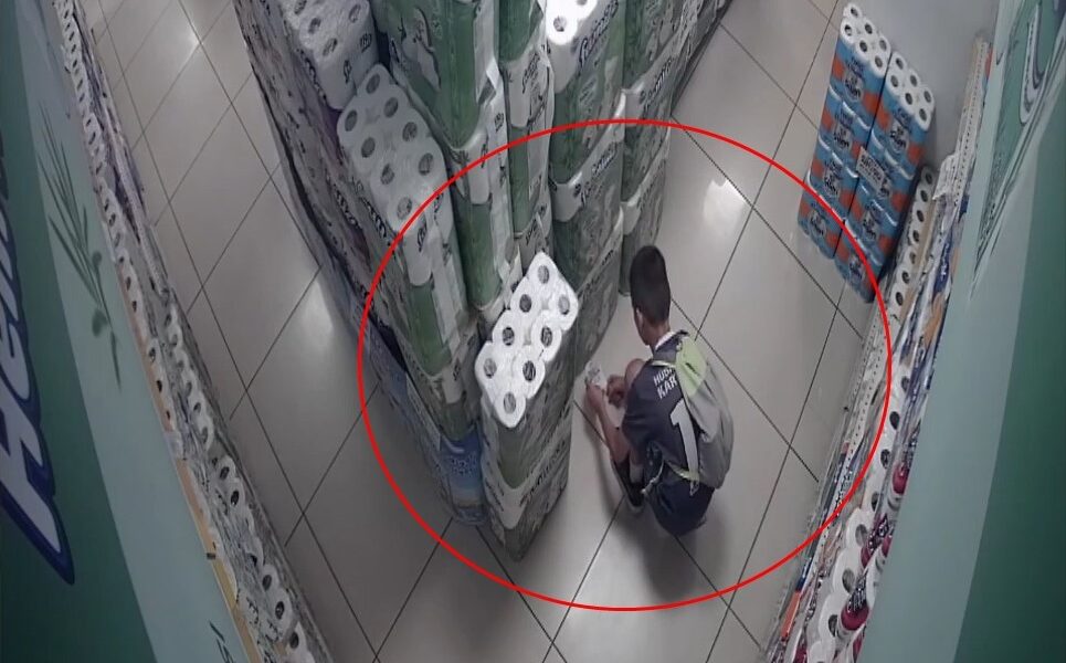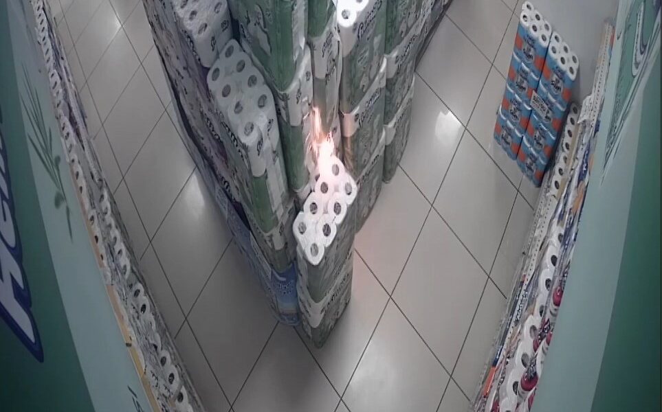 Markete giren çocuk, kağıt havluları tutuşturdu; o anlar kamerada