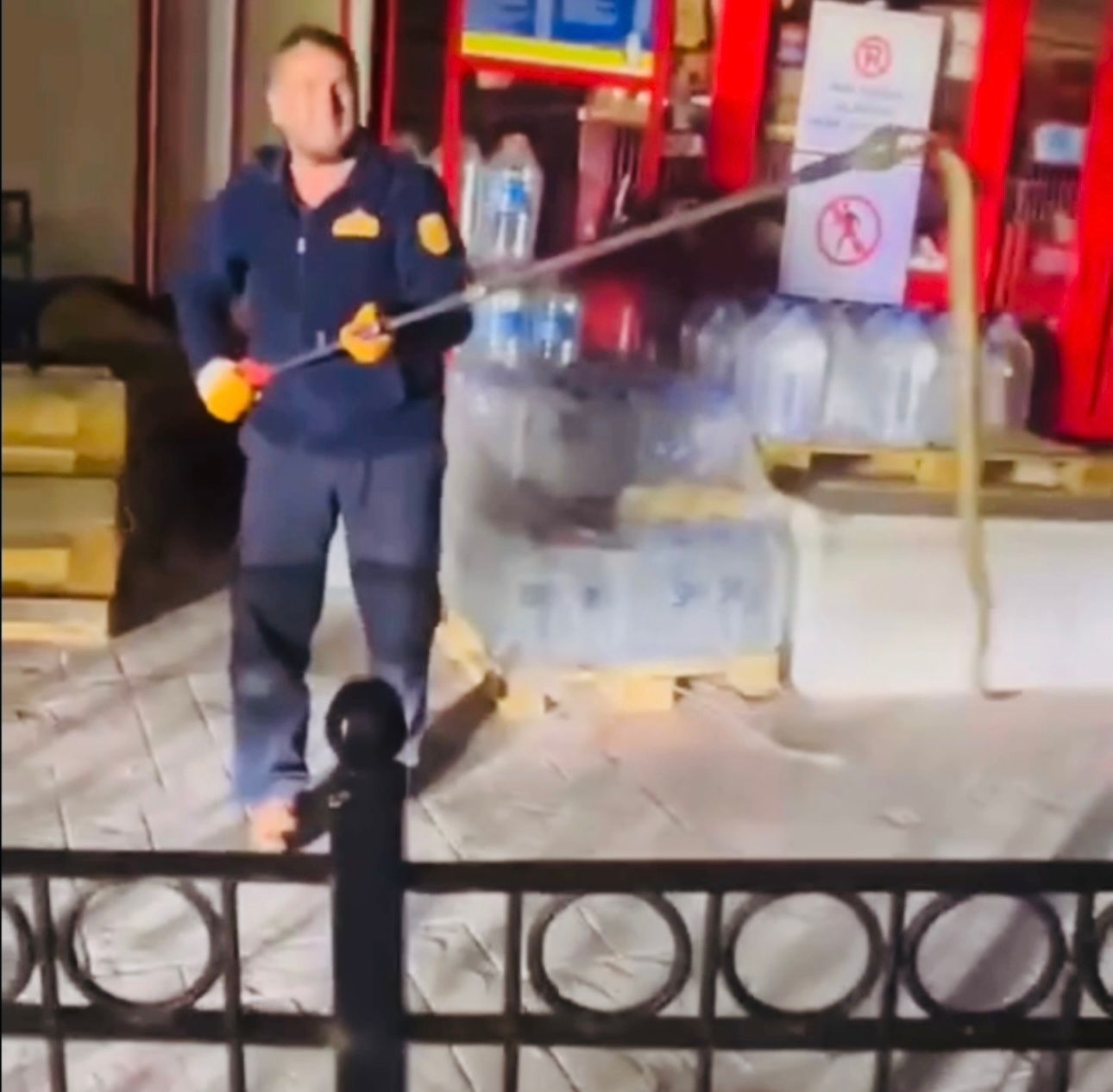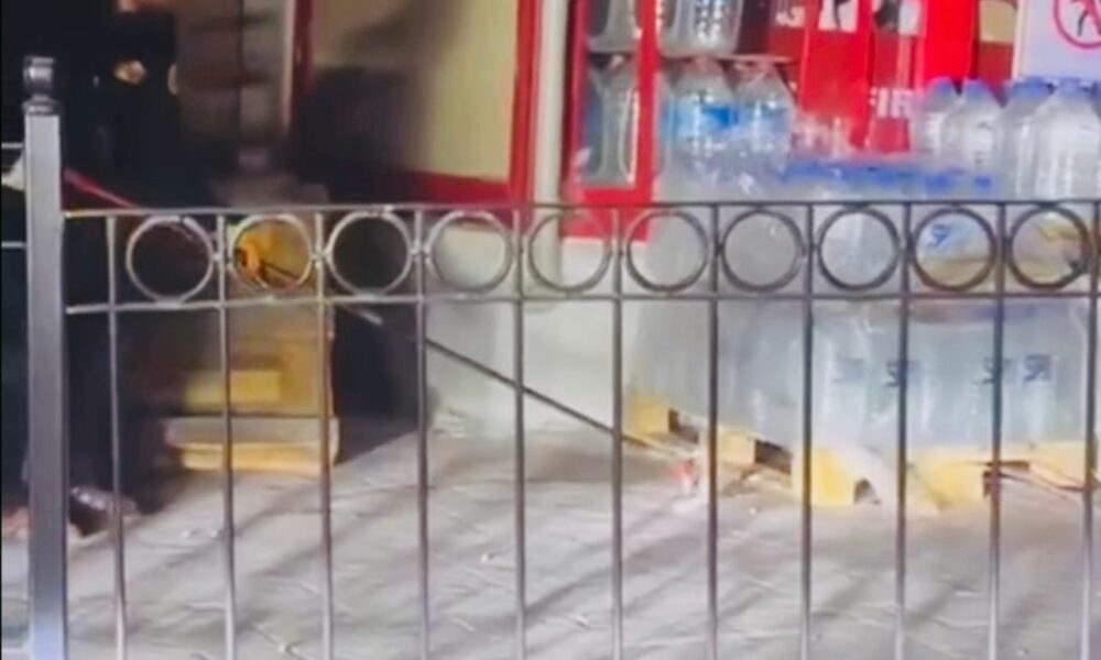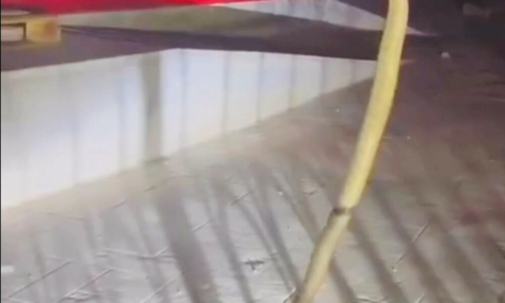Marketin önündeki yılanı itfaiyeciler yakaladı