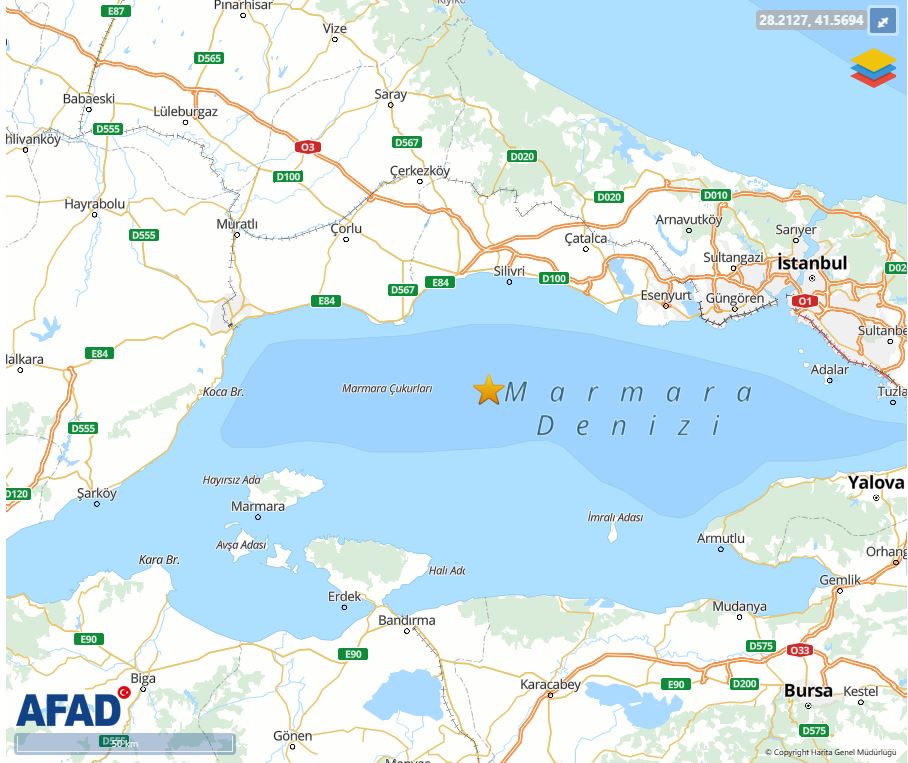 AFADdan yapılan açıklamaya göre; Marmara Denizi Tekirdağ Marmaraereğlisi açıklarında saat 11.36da 3.7 büyüklüğünde deprem meydana geldi. 18 kilometre derinlikteki deprem İstanbul ve çevre illerde hissedildi.