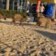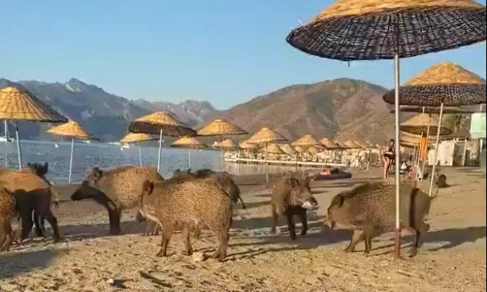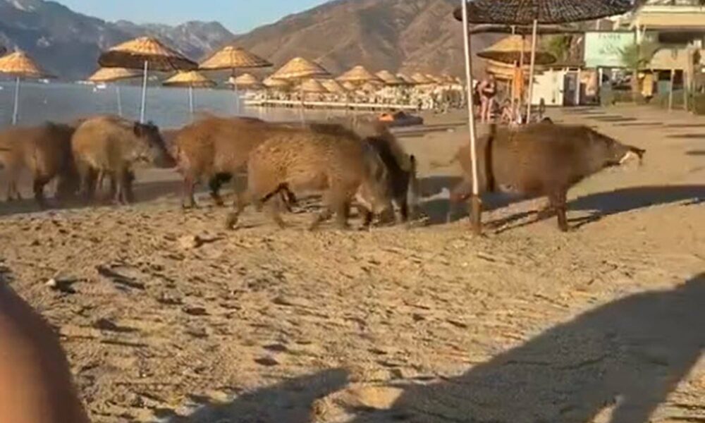 Domuz sürüsü, Marmariste halk plajına indi. Plajda şezlonglar arasında gezinen domuzları gören yerli-yabancı turistler, o anları cep telefonu kamerası ile kaydetti. Uzun süre plajdaki şezlongların arasında yiyecek arayan sürü, daha sonra ormana döndü. Marmariste ormana yakın yerleşim yerlerine beslenme amaçlı inen yaban domuzlarının, vatandaşlar tarafından yiyecek verilmesi nedeniyle evcilleşmeye başladıkları belirtildi.