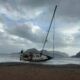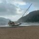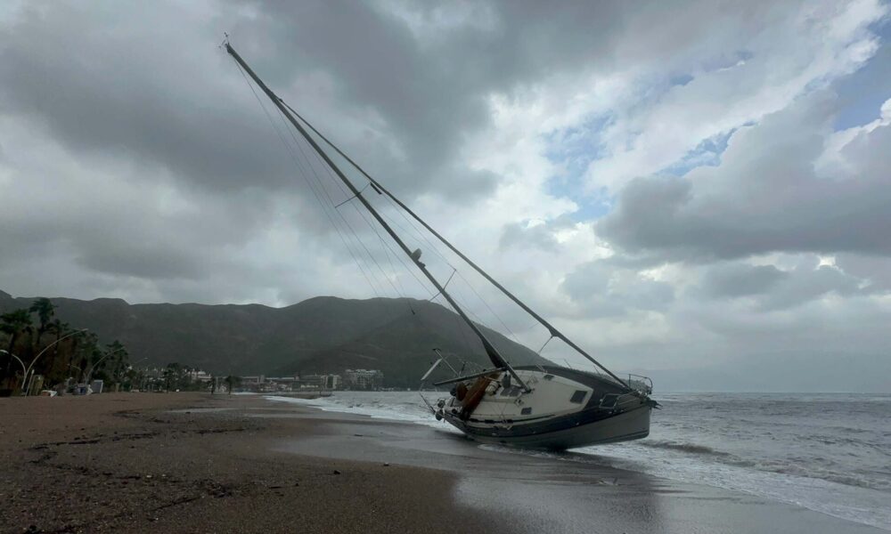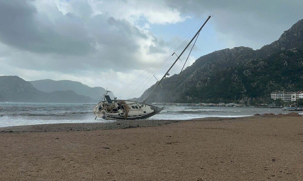 Muğla'nın Marmaris ilçesinde fırtına nedeniyle ağaçlar devrildi, yelkenli tekne karaya oturdu. Fotoğraf: Marmaris (Muğla),(DHA)