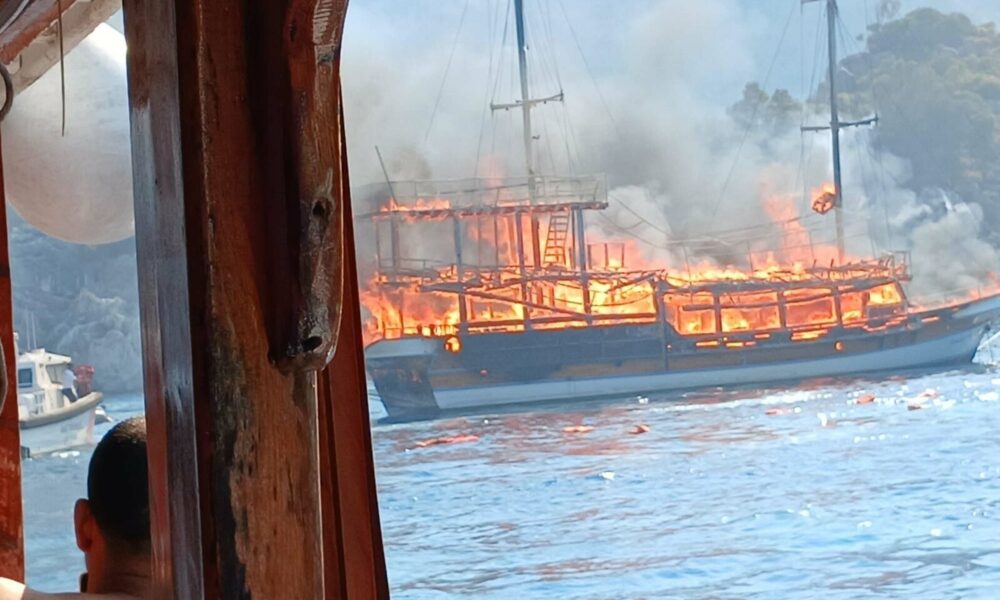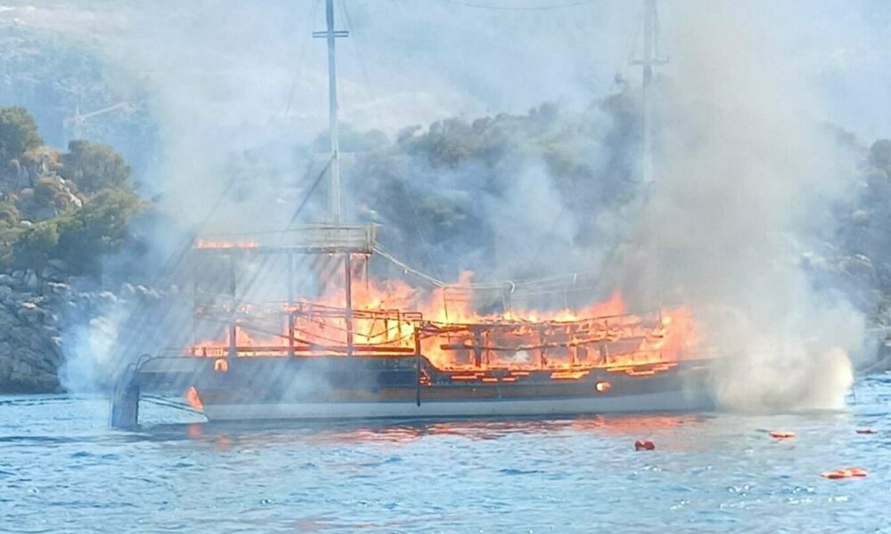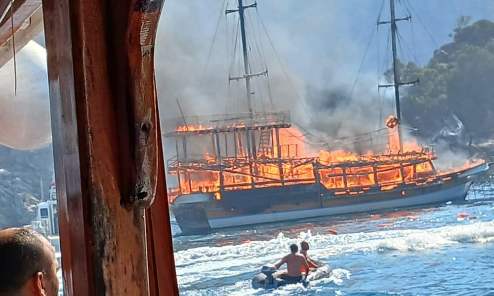 Marmaris’te tur teknesi yangını makine dairesinden çıkmış; 2 gözaltı