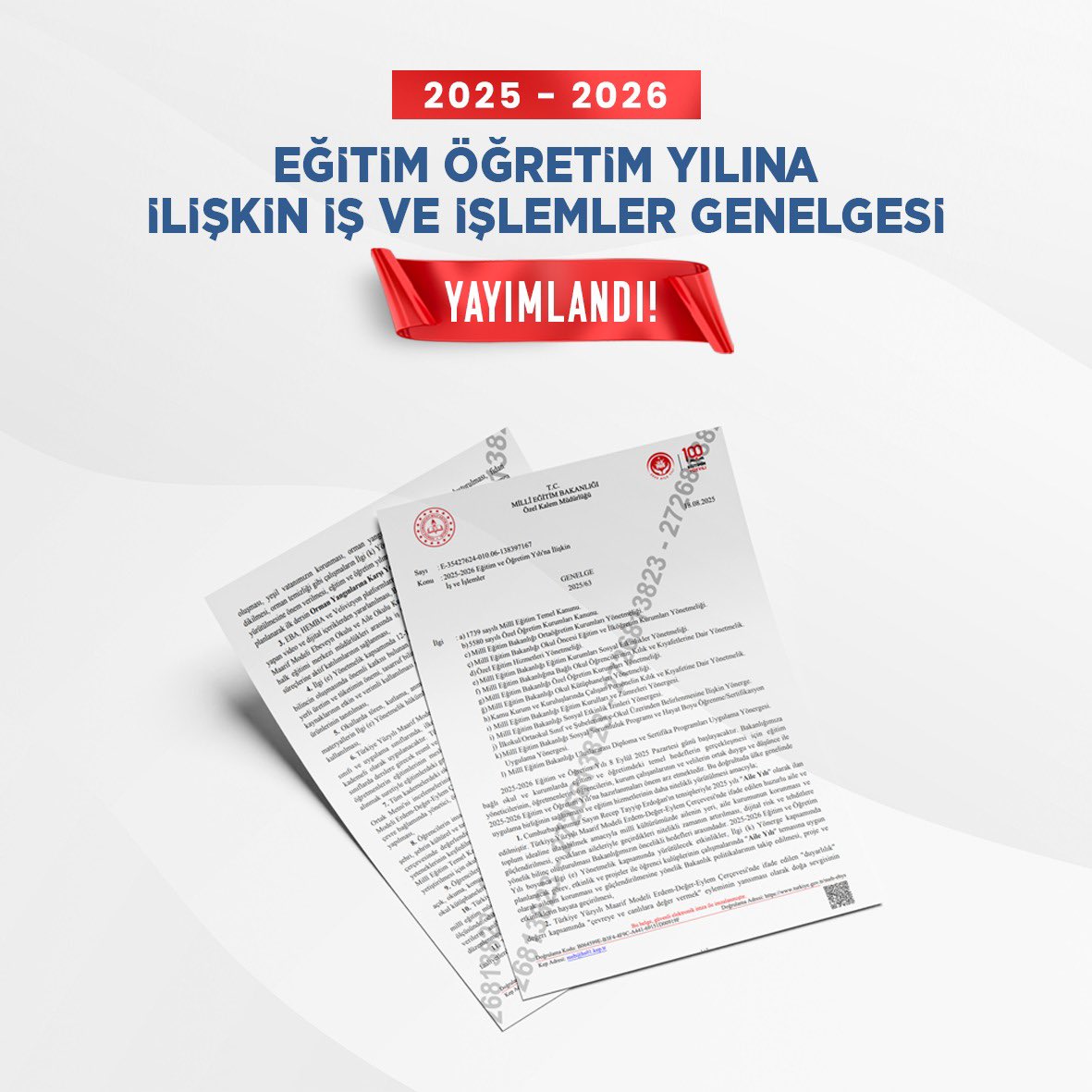 2025-2026 eğitim ve öğretim yılı 8 Eylül 2025 Pazartesi günü başlayacak. MEB, yeni eğitim ve öğretim yılı öncesi eğitim yöneticileri, öğretmenler, öğrenciler, kurum çalışanları ve velilerin ortak duygu ve düşüncelerle 2025-2026 eğitim öğretim yılına hazırlanmaları, ülke genelinde uygulama birliğinin sağlanması ve eğitim hizmetlerinin daha nitelikli yürütülmesi amacıyla 2025-2026 Eğitim ve Öğretim Yılına İlişkin İş ve İşlemler konulu genelge hazırladı. Genelge, Milli Eğitim Bakanı Yusuf Tekinin imzasıyla yayımlandı.