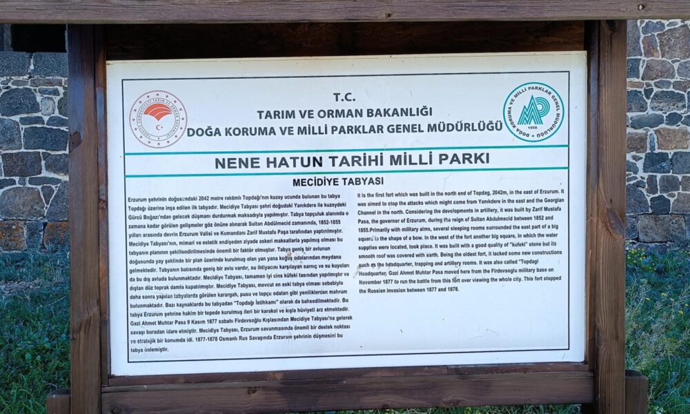 • Tarihte 93 Harbi olarak bilinen Osmanlı-Rus Savaşı'na sahne olan, Gazi Ahmet Muhtar Paşa’nın bir dönem kullandığı Mecidiye Tabyası, günümüzde ahıra döndü. ‘Erzurum Nene Hatun Tarihi Milli Parkı’ içinde olmasına rağmen yöredeki köylüler, büyükbaşlarını gün