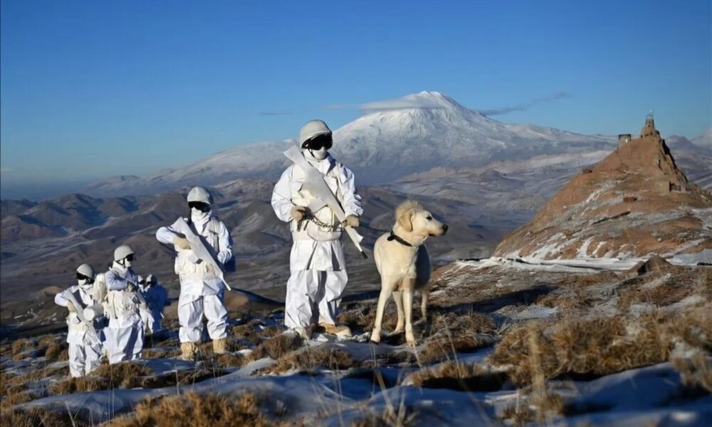 Milli Savunma Bakanlığının sanal medya hesabından yapılan paylaşımda, “5’inci Hudut Tugay Komutanlığınca, zorlu hava ve arazi şartlarında, 7 gün 24 saat esasıyla hudut hattı emniyetine yönelik keşif, gözetleme, pusu ve devriye faaliyetlerine devam ediliyor” denildi. Mehmetçiğin, kış şartlarına uyumlu kamuflajları ile karla kaplı dağlık arazide devriye görevi icra ederken çekilen fotoğrafları da paylaşıldı.