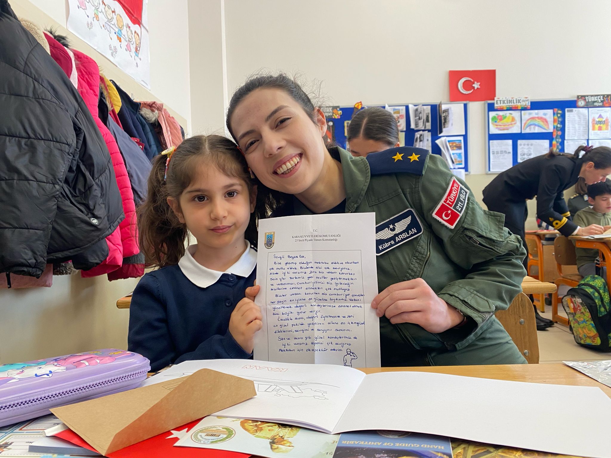 Öğrencilerden Beyza Ece Tongal (7), mektubuna gelen cevaba çok sevindiğini belirterek, “Çok heyecanlıyım. Onlar olmasaydı, topraklarımız olmazdı. Onların sayesinde bu topraklarda yaşayabiliyoruz. Askerlerimiz sayesinde bu topraklar bizim. Onlar iyi ki var. Buradan selamlarımı iletiyorum” diye konuştu. Ayşe Yılmaz (7) ise “Çok güzel şeyler yazmışsınız. Çok gururlandım. Onları çok seviyorum. Onlar vatanımızı kurtardı” dedi. Etkinlik kapsamında, Hava Kuvvetleri Komutanlığı bandosu tarafından öğrenci ve öğretmenlere konser verildi.