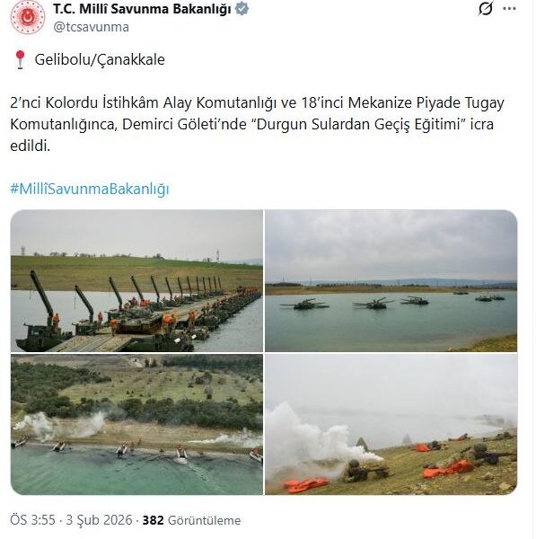 Milli Savunma Bakanlığının sanal medya hesabından yapılan paylaşımda, “2nci Kolordu İstihkam Alay Komutanlığı ve 18inci Mekanize Piyade Tugay Komutanlığınca, Demirci Göletinde Durgun Sulardan Geçiş Eğitimi icra edildi” denilerek, eğitime ilişkin fotoğraflara yer verildi.