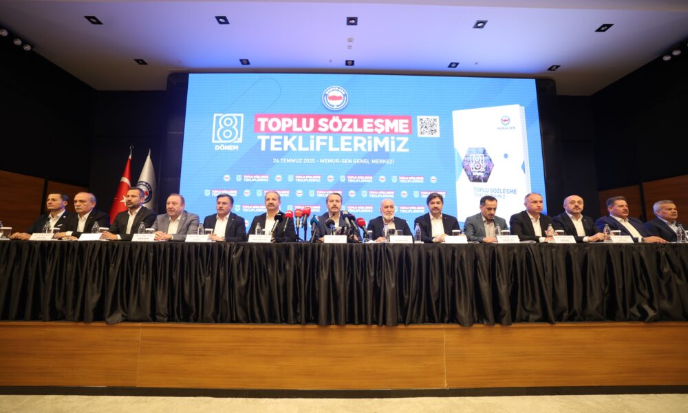 Memur-Sen Genel Başkanı Ali Yalçın, 1 Ağustosta başlayacak 8inci Dönem Toplu Sözleşme görüşmeleri öncesi basın toplantısı gerçekleştirdi. Yalçın, memurların maaş ve ücretlerinin açlık ve yoksulluk sınırı arasında sıkıştığını, piyasaların daraldığını, gelir dağılımı adaletinin temelden sarsıldığını, faiz yükünün arttığını, vergi matrahlarının olması gerekenden daha az seviyede belirlendiğini, enflasyonu azaltmak için sabit ücretlinin baskılandığını ve zorunlu giderlerin etiketlere günlük yansıdığını söyledi. Yalçın, Bildiğiniz üzere 7nci Dönem Toplu Sözleşme’de genele yönelik kısımda uzlaşma sağlayamadık. Tüm ısrarlarımıza rağmen kamu işvereni teklifini yükseltmedi. Enflasyon hedefinin altında sunduğu teklife de biz razı olmadık. Zorunlu olarak Hakem’e başvurduk. Hakemin noter usulü onayladığı rakamlar nedeniyle 2 yıldır maaşlarımız baskılandı, gelir kayıplarımız artarak devam etti. Bu olumsuz tabloyu tersine çevirmek, emekçinin hakkını teslim etmek için toplu sözleşme masası son derece önemli, gelir kayıplarımızın telafisi için gerekli dedi.