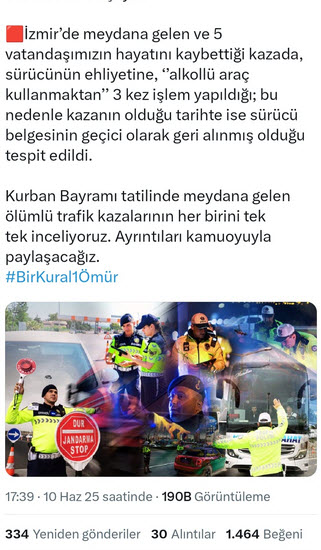 Kazada yaşamını yitiren sürücülerden Özkan Nazlının alkollü araç kullanmaktan ehliyetine el konulduğu ortaya çıktı. İçişleri Bakanı Ali Yerlikaya sosyal medya hesabından yaptığı paylaşımda, “İzmirde meydana gelen ve 5 vatandaşımızın hayatını kaybettiği kazada, sürücünün ehliyetine, alkollü araç kullanmaktan 3 kez işlem yapıldığı; bu nedenle kazanın olduğu tarihte ise sürücü belgesinin geçici olarak geri alınmış olduğu tespit edildi” ifadelerine yer verdi.