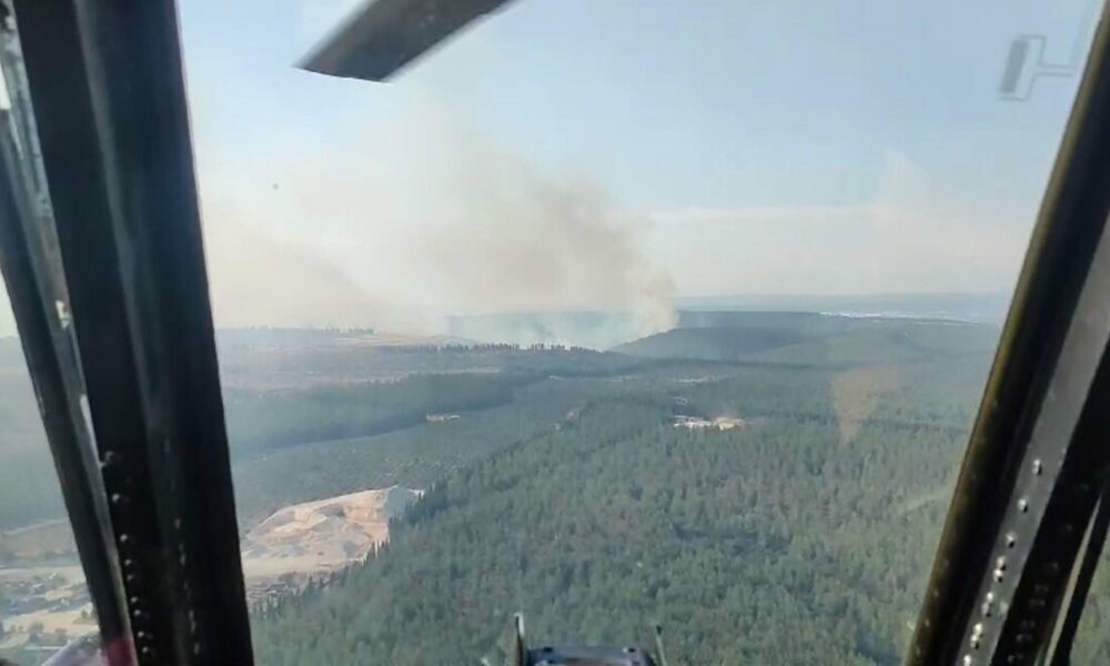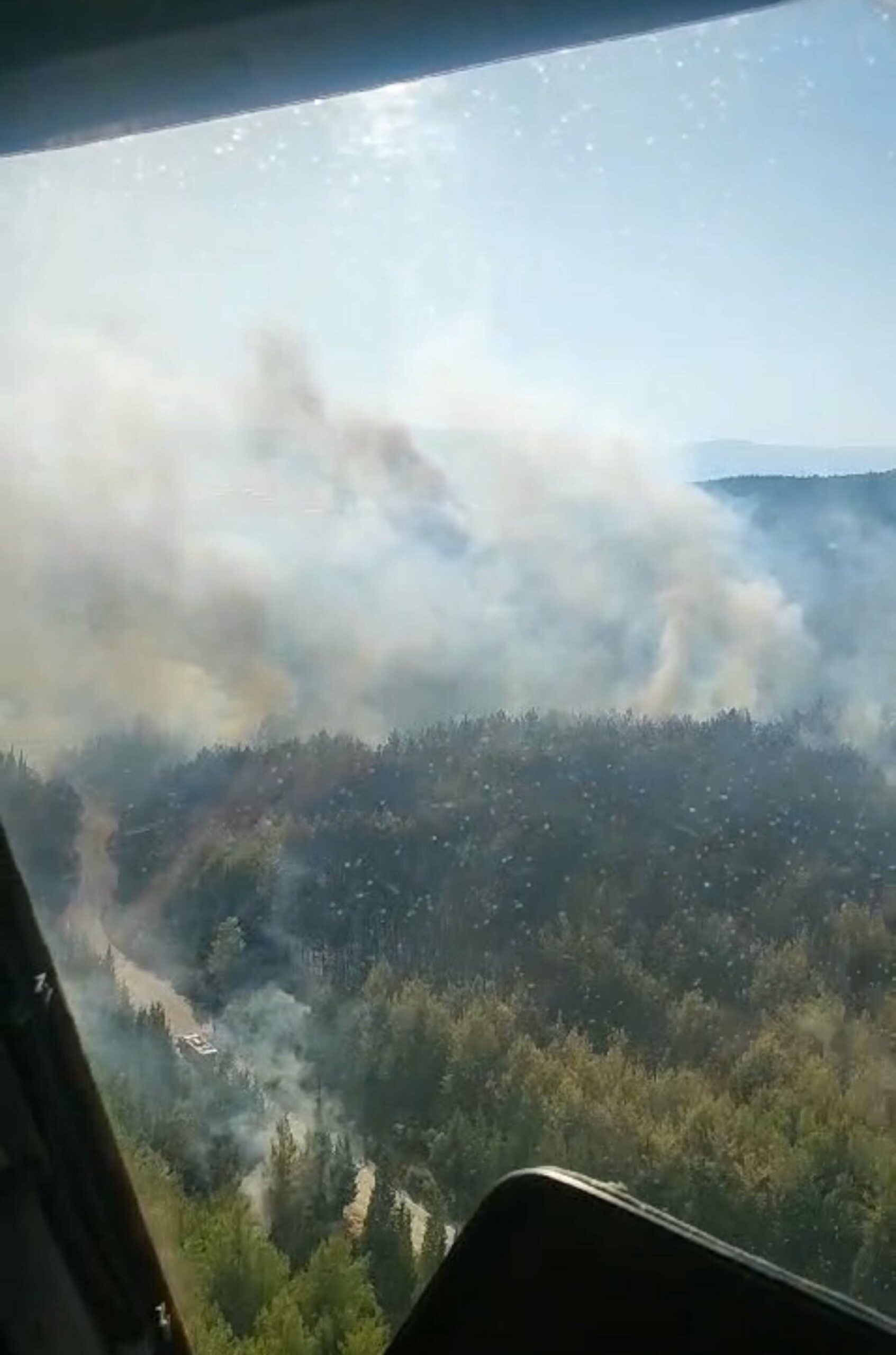 Ýzmir'in Menderes ilçesinde orman yangýný çýktý. Alevlere havadan ve karadan müdahale sürüyor.Fotoðraf:Ýzmir,(DHA)
