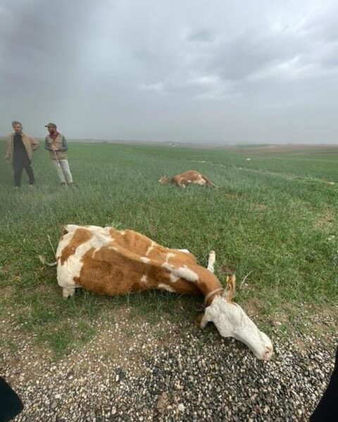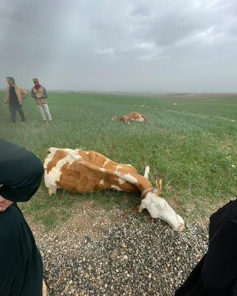 Olay, sabah saatlerinde Bismil ilçesi kırsal Arapkent Mahallesi’nde meydana geldi. Etkili olan sağanak sırasında meraya yıldırım düştü. Bu sırada merada otlayan 2 inek öldü.