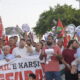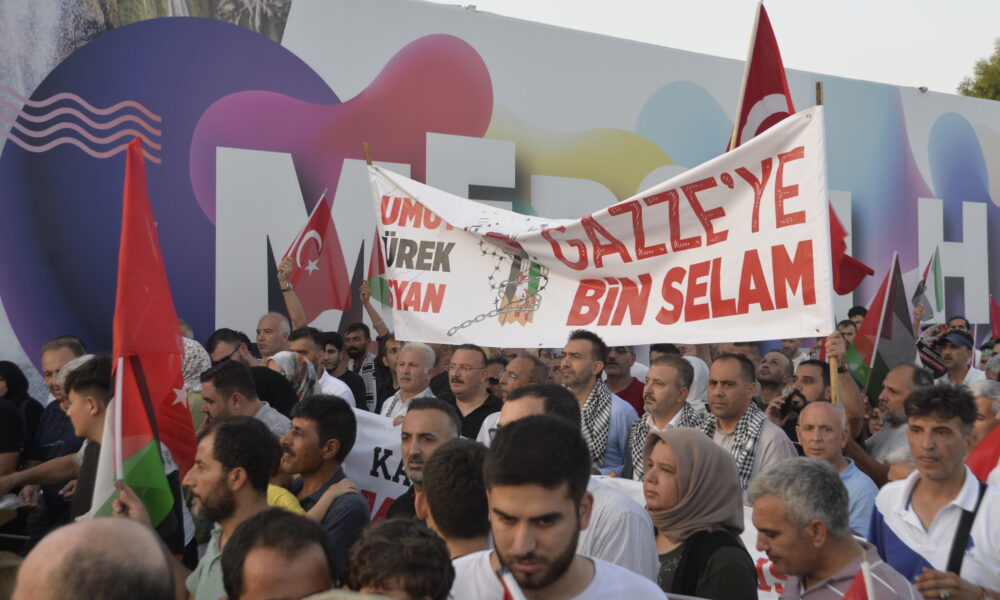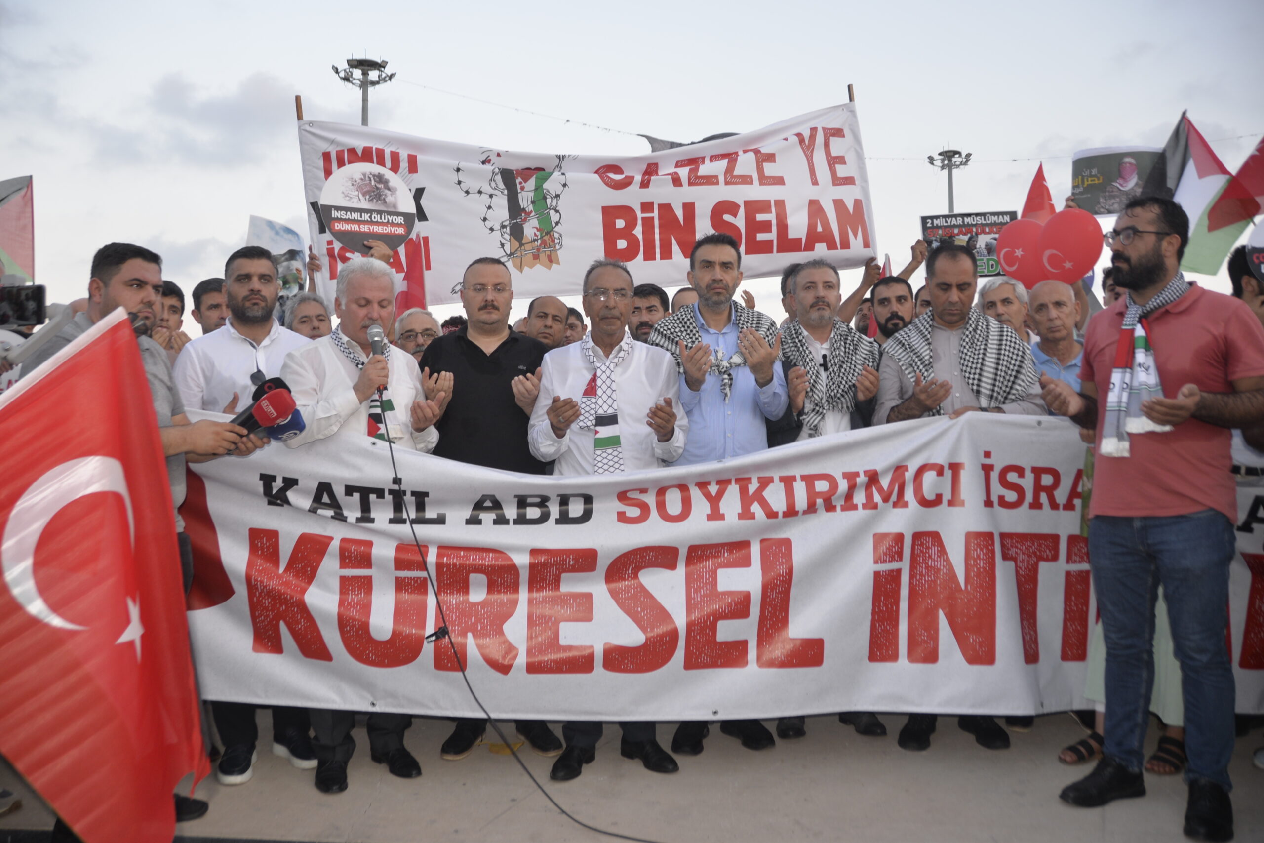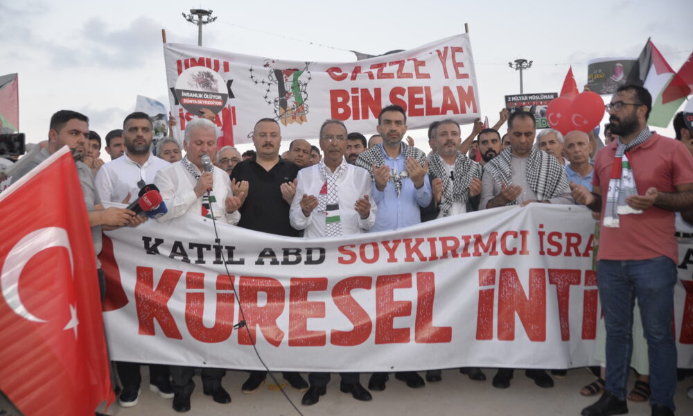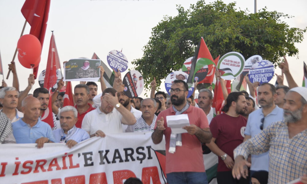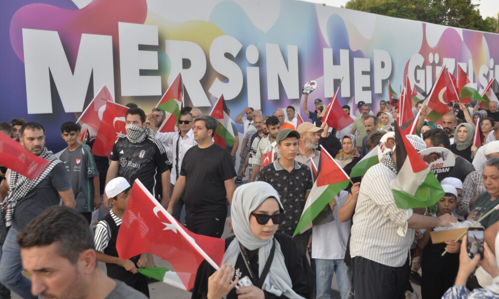 Mersin Filistin Dayanışma Platformu ev sahipliğindeki protesto yürüyüşü, Mersin İdman Yurdu Meydanı’ndan başladı. Yürüyüşe AK Parti Milletvekili Ali Kıratlı, AK Parti İl Başkanı Adem Aldemir’in yanı sıra yüzlerce vatandaş katıldı. ‘Filistin halkı yalnız değildir, ‘Siyonist İsrail, Filistin’den defol’, ‘Çocuklar ölüyor, dünya susuyor’, ‘Katil ABD, Ortadoğu’dan defol’ yazılı döviz ve pankartlar taşınarak slogan atıldı.