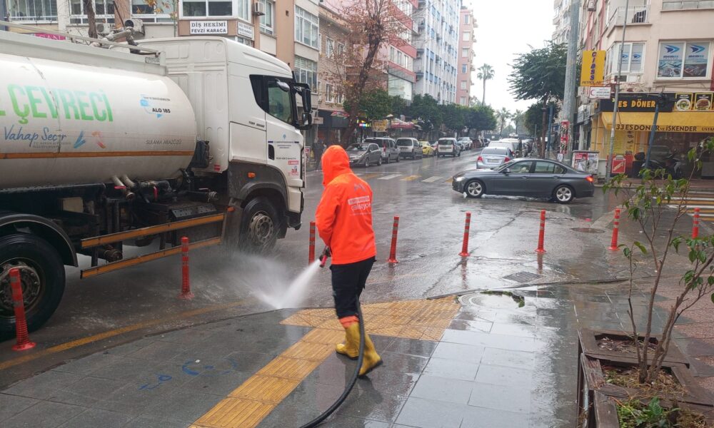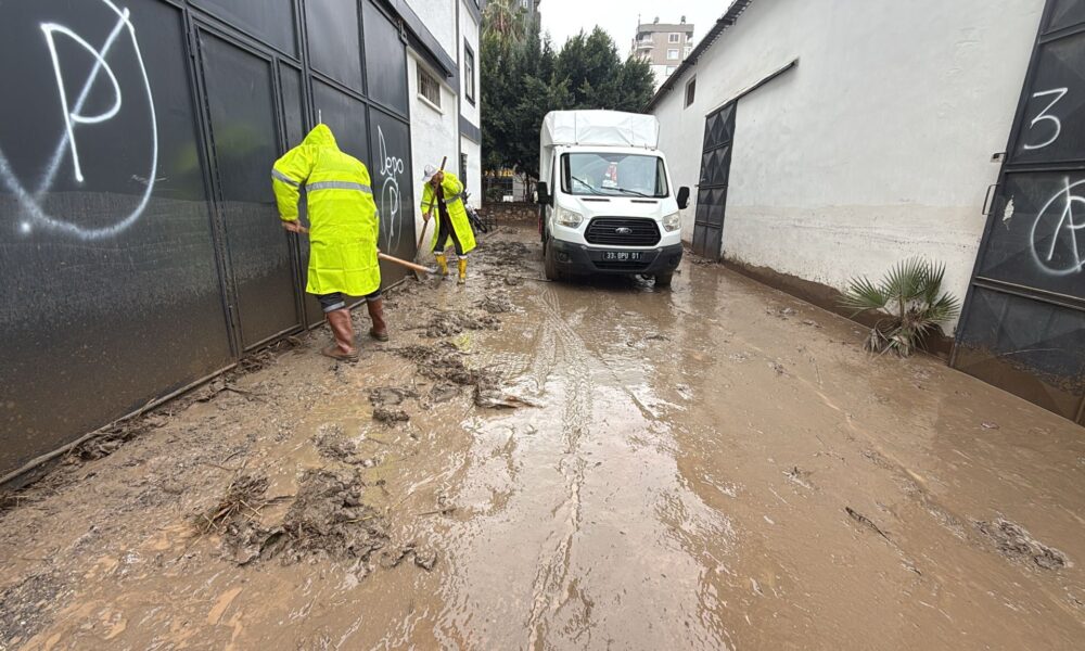 Mersin’de kuvvetli yağış sonrası temizlik çalışması