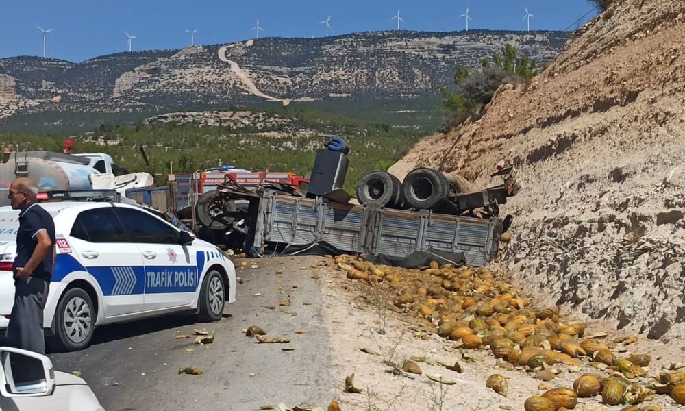 • Mersin’in Mut ilçesinde, freni boşaldığı öne sürülen kavun yüklü kamyonun karşı yöne geçip yolcu otobüsü ile çarpıştığı kazada 3 kişi öldü, 7 kişi yaralandı. Fotoğraf: Mersin, (DHA)