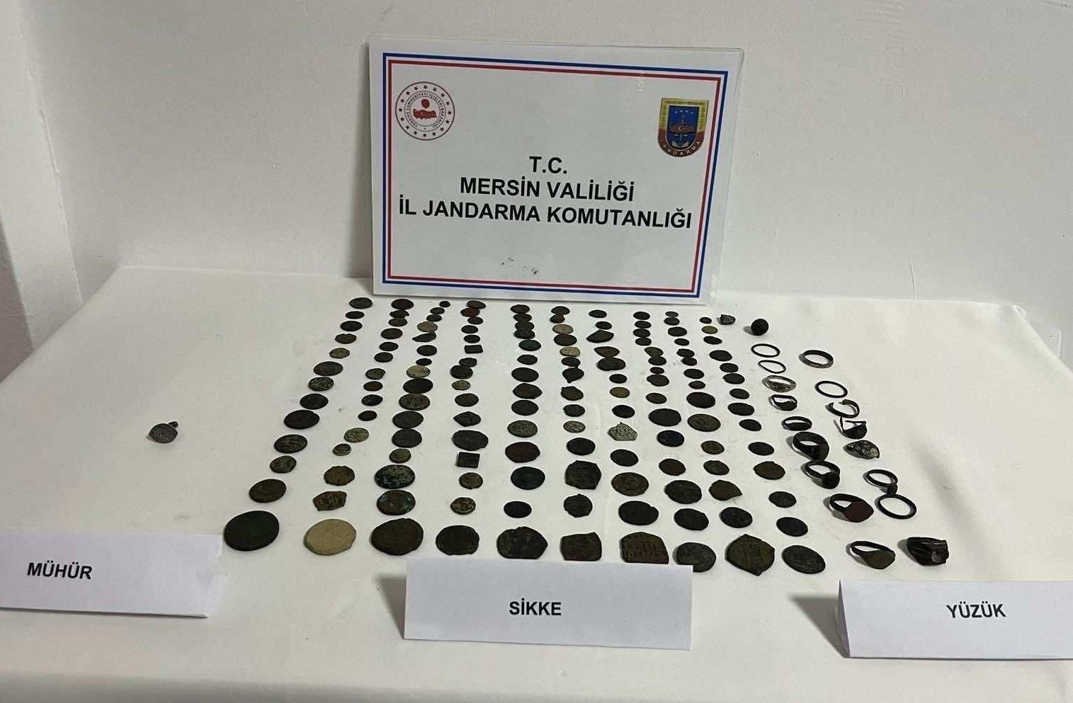 Mersin İl Jandarma Komutanlığı ekipleri, Silifke ve Akdeniz ilçelerinde elinde bulundurduğu tarihi eserleri satmak için müşteri arayışında olan 2 kişiyi tespit ederek takibe aldı. Yapılan takip ve araştırmanın ardından iki ayrı operasyon düzenleyen ekipler, tarihi eser kaçakçısı M.A.G. ile C.Ç.yi gözaltına aldı. Tarihi eser kaçakçılarının aracında ve evinde arama yapan jandarma ekipleri 147 sikke, 17 yüzük, 1 mühür ile Yunan-Ortodoks dönemine ait olduğu değerlendirilen el yazması kitap ele geçirildi. Tarihi eserler incelenmek üzere Mersin Müze Müdürlüğü’ne teslim edildi.